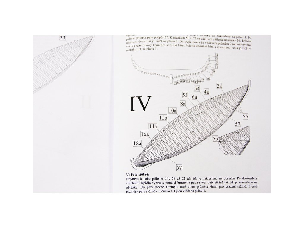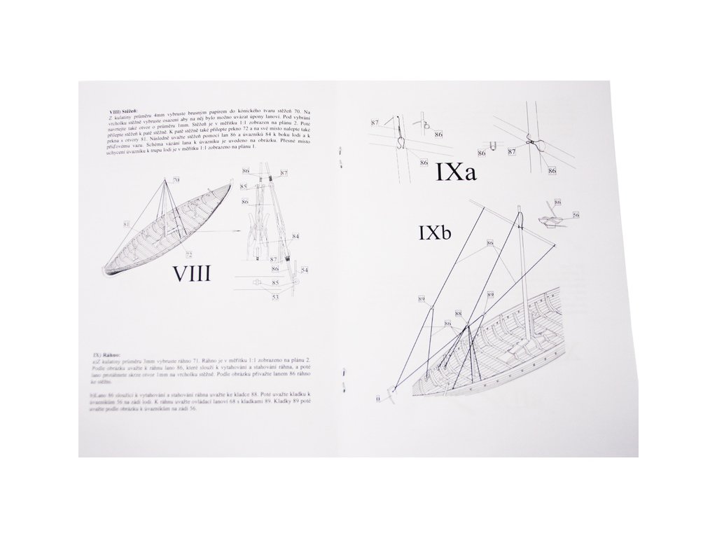 Set obsahuje kompletní sadu výkresové dokumentace modelu v měřítku 1:1 s obrázky jednotlivých detailů. Na výkrese jsou v měřítku nakresleny montážní sestavy, jejich kompletace a to včetně stěžňů a ráhen a způsob vázání lanoví. Vícejazyčný postup stavby rámcově upravuje logické sestavení jednotlivých komponentů.