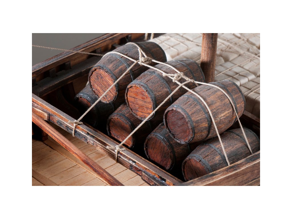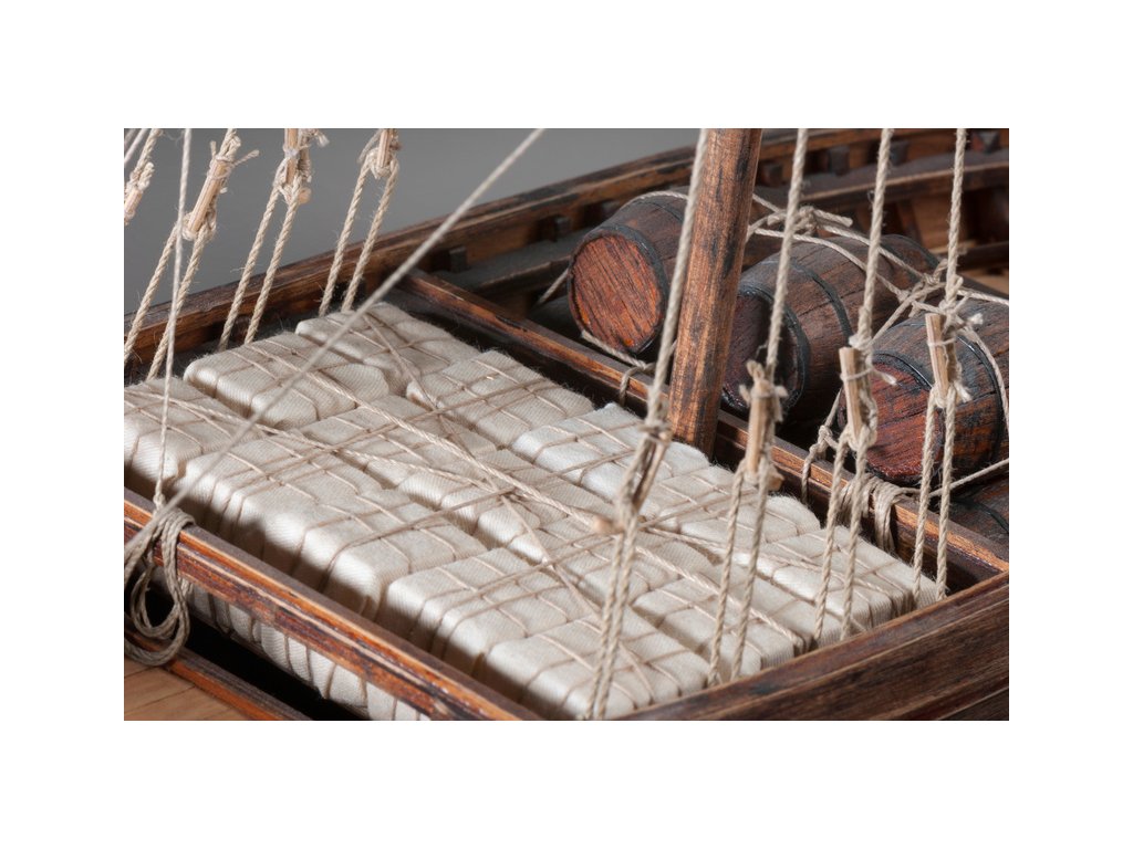 V balení je stavebnice modelu Vikingské lodi Knarr v měřítku 1:35, obsahuje 5 laserem řezaných překližkových panelů v různých tloušťkách, svazek lišt a nosníků, plachta, 2 stavební plány, ilustrované pokyny, manuál EN, FR, SP, CZ.