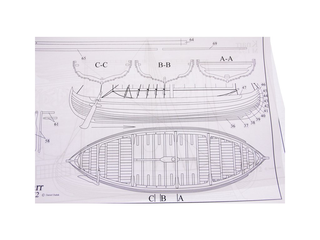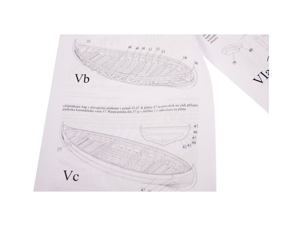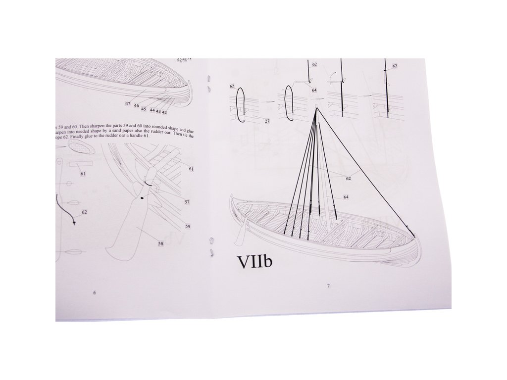 Stavebnice modelu Vikingské lodi Knarr v měřítku 1:35. Délka modelu lodi je 440mm, stavba převážně ze dřeva s drobnými doplňky, součástí je stavební plán a pokyny s mnoha podrobnými obrázky.