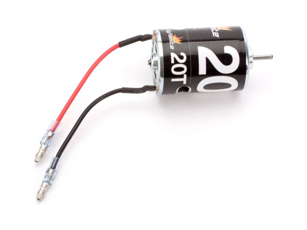 Stejnosměrný motor 540 Dynamite s 20 závity pro RC modely aut 1:10. Hřídel má průměr 3.17 mm a délku 16 mm. Průměr motoru 36 mm, délka bez hřídele 50 mm.