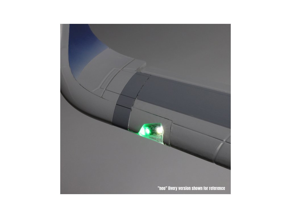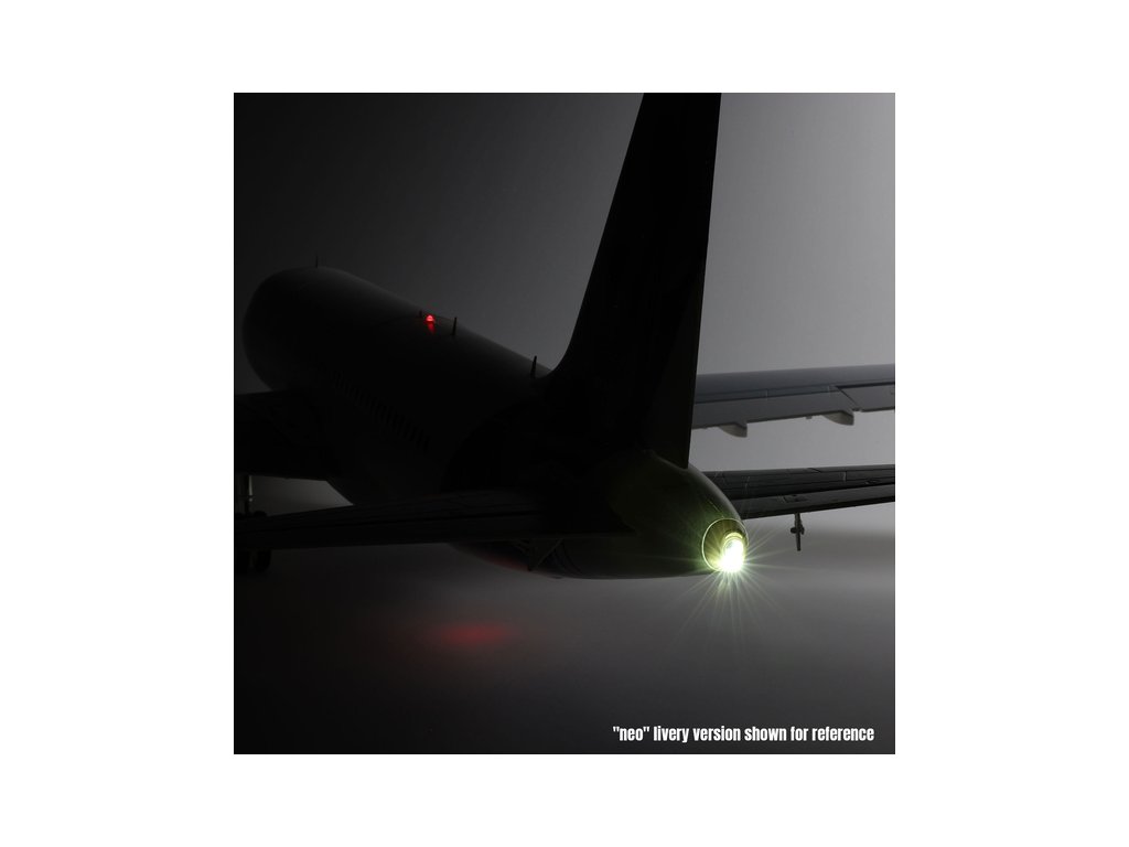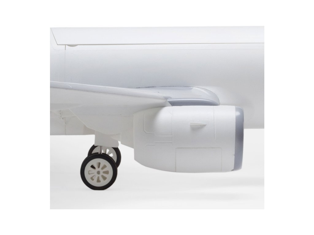 Lehký drak letadla z materiálu EPO vyztuženého kompozitem je dodáván s hotovou povrchovou úpravou a se speciálním schématem „neo“ od Airbusu. K montáži není potřeba žádné lepidlo, dvoudílné křídlo se jednoduše instaluje pro pohodlnou přepravu v autě. Osm digitálních serv je spojeno s kormidly přes táhla s kulovými čepy pro přesné a spolehlivé ovládání při všech rychlostech. Mezi funkční prvky patří LED navigační, stroboskopická a přistávací světla, vztlakové klapky a elektrické zatahování podvozku, který je navíc vybaven tlumiči a velkými koly, takže můžete vzlétat a přistávat nejen z tvrdých rovných povrchů, ale i z travnatých ploch. To vše dohromady vytváří model ikony civilního letectví, který si budete užívat let za letem!