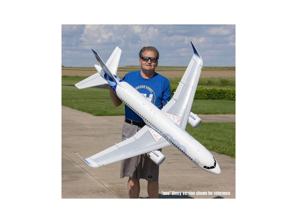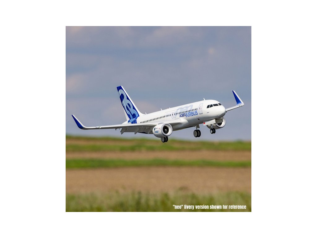 RC model nejpopulárnějšího dopravního letadla - E-flite Airbus A320neo se dvěma 64 mm elektrodmychadly. Model je v bílé variantě bez grafiky a zbarvení, což umožňuje dodělat si vlastní barevnou kreaci dle vašich představ. Nabízí realistické detaily s licencovaným vzhledem společností Airbus, překvapivý výkon, skvělé letové vlastnosti a dokonce možnost provádění základní akrobacie. Pro autentický letový zážitek je model vybaven celou řadou funkcí, včetně LED přistávacích a navigačních světel, vztlakových klapek a elektrického zatahovacího podvozku. Pohonný systém v podobě duálního regulátoru a střídavých motorů lze napájet akumulátorem 6S LiPo. Instalovaná jsou kvalitní digitální serva s kovovými převody. Tato verze BNF Basic je vybavena přijímačem Spektrum s vylepšenou technologií AS3X+, která ještě lépe stabilizuje let za větru a v turbulenci, a také volitelným systémem SAFE pro snadnější a bezpečnější ovládání i méně zkušeným pilotům. Nechybí ani funkce reverzace tahu, která zkracuje vzdálenost po přistání a usnadňuje rolování po dráze.