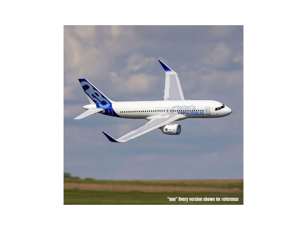 RC model nejpopulárnějšího dopravního letadla - E-flite Airbus A320neo se dvěma 64 mm elektrodmychadly. Bílá varianta pro vlastní zbarvení. Nabízí licencovaný vzhled, výkon a skvělé vlastnosti s možností základní akrobacie. Zatahovací podvozek, klapky, LED osvětlení. Stabilizace AS3X+ a SAFE.