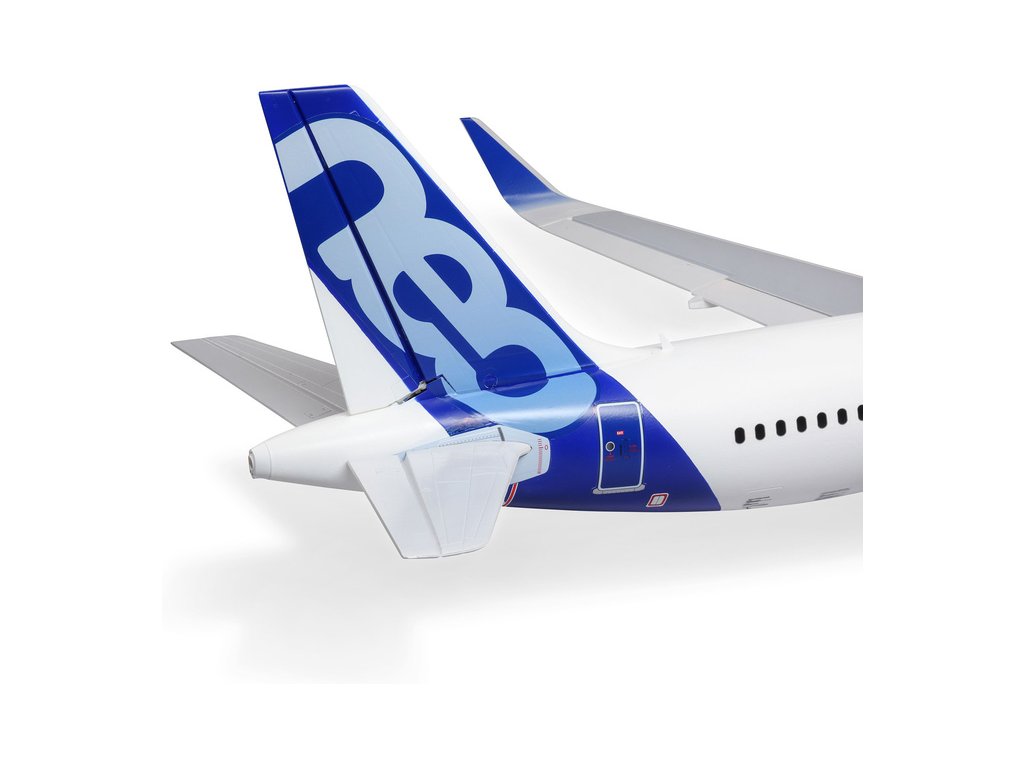 Lehký drak letadla z materiálu EPO vyztuženého kompozitem je dodáván s hotovou povrchovou úpravou a se speciálním schématem „neo“ od Airbusu. K montáži není potřeba žádné lepidlo, dvoudílné křídlo se jednoduše instaluje pro pohodlnou přepravu v autě. Osm digitálních serv je spojeno s kormidly přes táhla s kulovými čepy pro přesné a spolehlivé ovládání při všech rychlostech. Mezi funkční prvky patří LED navigační, stroboskopická a přistávací světla, vztlakové klapky a elektrické zatahování podvozku, který je navíc vybaven tlumiči a velkými koly, takže můžete vzlétat a přistávat nejen z tvrdých rovných povrchů, ale i z travnatých ploch. To vše dohromady vytváří model ikony civilního letectví, který si budete užívat let za letem!
