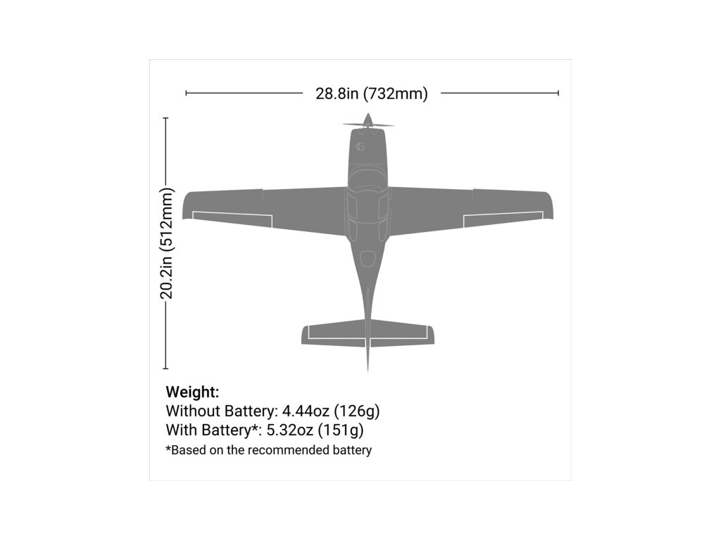 RC model letadla E-flite Cirrus SR22T 0.7m je mikro model s výbornými letovými vlastnostmi a moderním designem. Díky své velikosti je připraven vzlétnout téměř kdekoli – od velkých dvorů a malých parků až po sportovní hřiště a další. Nový výkonnější a tišší střídavý motor má dostatek výkonu pro sportovní i akrobatické létání. Model lze provozovat na oblíbené a cenově dostupné 2S, nebo 3S LiPo akumulátory. Nově je k dispozici také telemetrie při spárování s kompatibilním vysílačem Spektrum (není obsahem balení). Starty a přistání usnadní 3-kolové uspořádání podvozku s řiditelnou příďovou nohou. Exkluzivní technologie AS3X® automaticky a nepozorovaně srovnává každou odchylku polohy modelu při letu v turbulentním prostředí. Technologie SAFE® Select v přijímači modelu umí při aktivaci zabránit překročení náklonu v zatáčce a rovněž omezí stoupání a klesání. Další její funkcí je návrat do vodorovné polohy pouhým puštěním řídících pák vysílače.