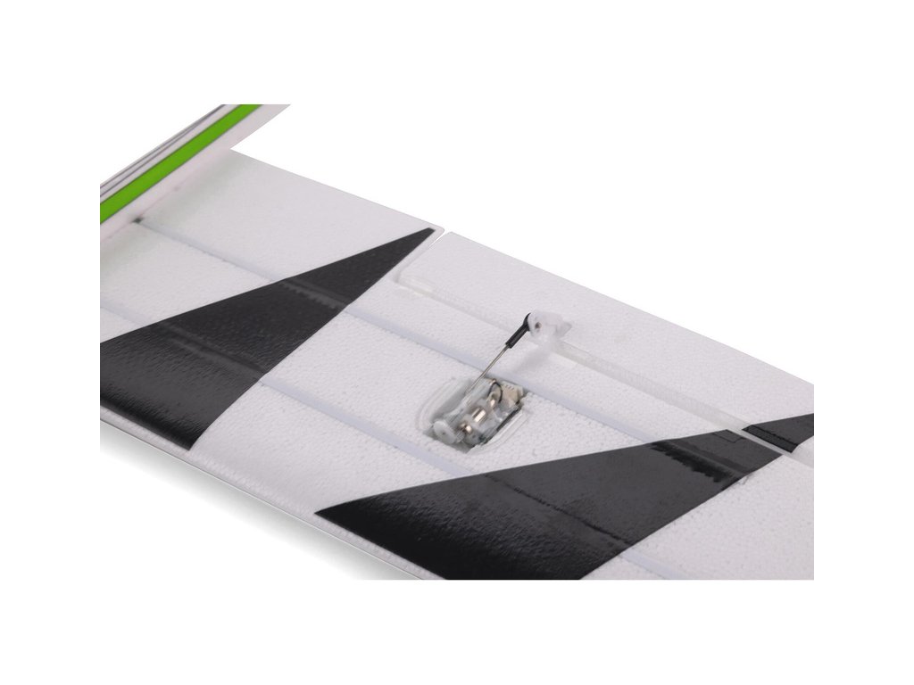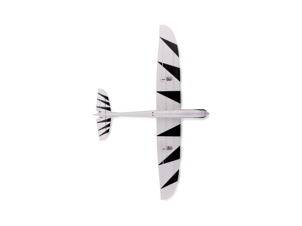V balení je kompletní trup s elektronikou a nainstalovanými ocasními plochami a křídlo s nainstalovanými servy a kabely. Stačí připojit konektory a připevnit křídlo k trupu jedním bajonetovým pojistným mechanismem. Nepotřebujete ani šroubovák, zajištění provedete prsty.