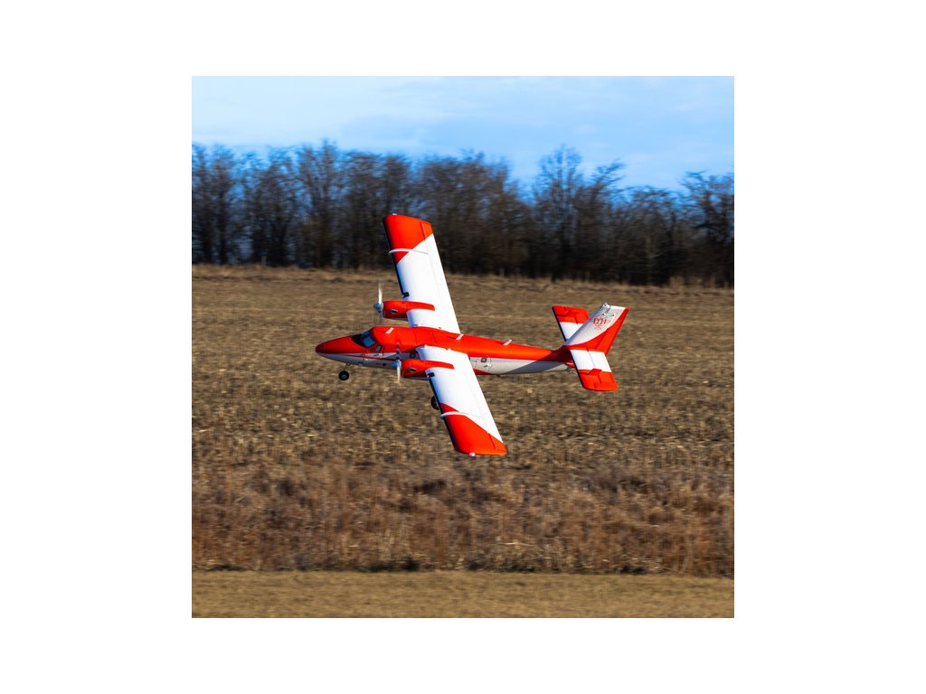 Dvoumotorový RC model letadla E-flite DHC-6 Twin Otter 1.4m, maketově zpracovaný podle užitkového letadla. Střídavé motory, napájení 3-4S LiPo, možnosti STOL (krátký start a přistání), vztlakové klapky, LED osvětlení.