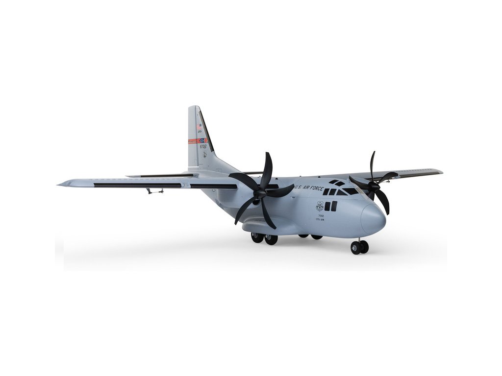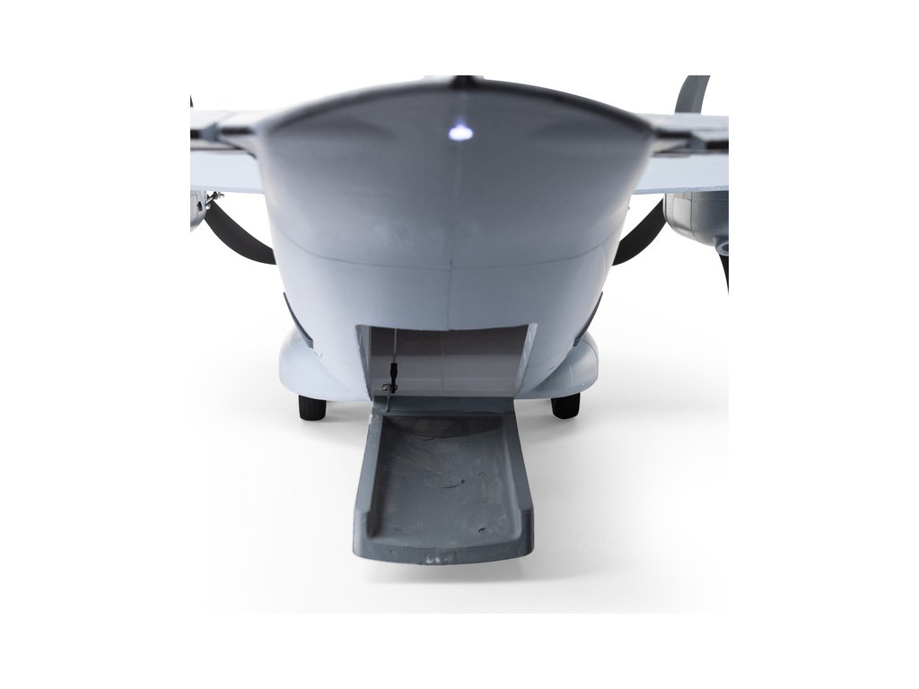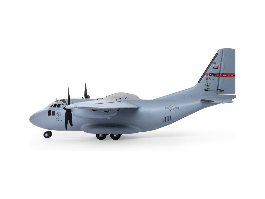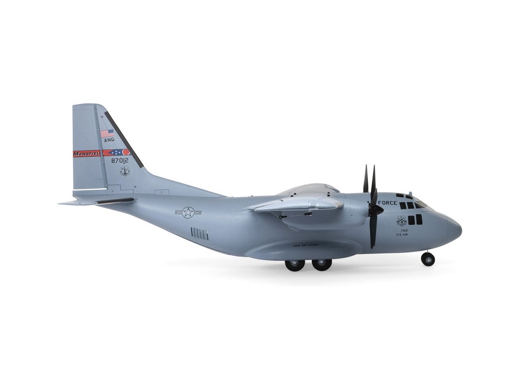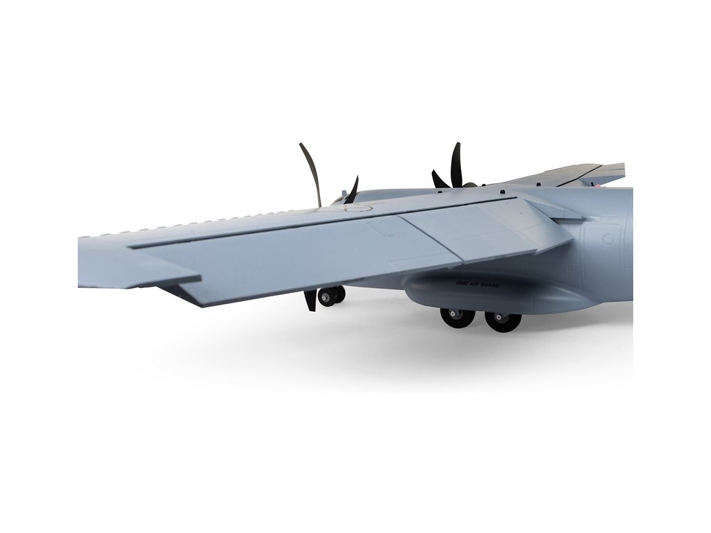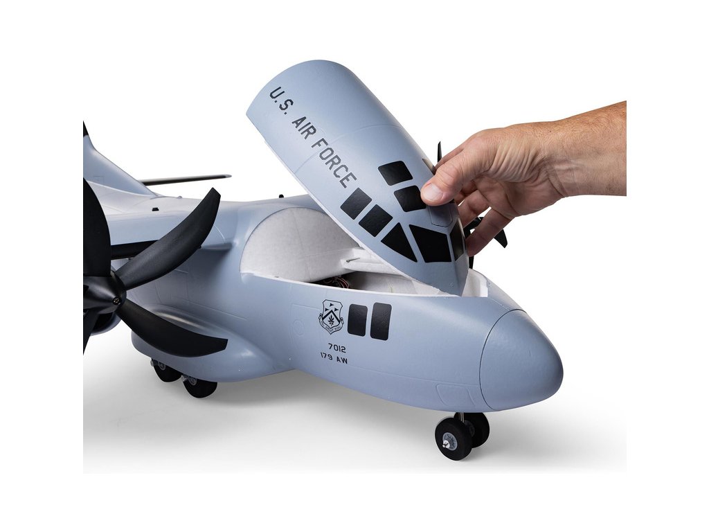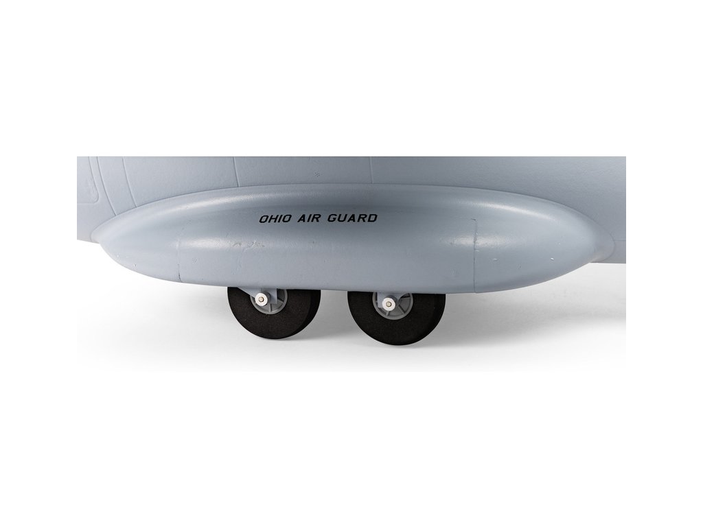 V modelu je nainstalováno 8 ks serv, ta s kovovým převodem jsou na všech ovládacích plochách a funkčních dveřích nákladového prostoru, takže můžete vynášet do výšky a poté shazovat užitečný náklad z velkého nákladového prostoru. Realisticky vypadající LED přistávací, navigační a simulovaná stroboskopická světla jsou napájena z letové baterie, takže můžete létat až do soumraku – z pevných, travnatých nebo prašných povrchů. Dokonce můžete létat i na sněhu pomocí přiložených lyží! Pokud jste příznivec hydroplánů, tak z rybníků a jezer můžete vzlétat pomocí volitelných plováků (prodávají se samostatně). Odstraňte magneticky zajištěný kužel nosu a nainstalujte si GoPro® nebo podobnou kameru pro záznam letu nebo namontujte samostatnou FPV kameru na velký horní kryty trupu (kamery/výbava se prodávají samostatně). Navíc můžete použít přiložené obtisky k přizpůsobení nyní zbarveného šedého provedení s logy a nápisy Ohio Air National Guard, Air Force, Army, Coast Guard, Marines, Navy a dalšími znaky, pro personalizací vašeho modelu! Výsledkem je zatím nejschopnější, nejuniverzálnější a nejzábavnější létání s dvoumotorovým modelem, který je určen pro širokou škálu středně pokročilých až zkušených pilotů.