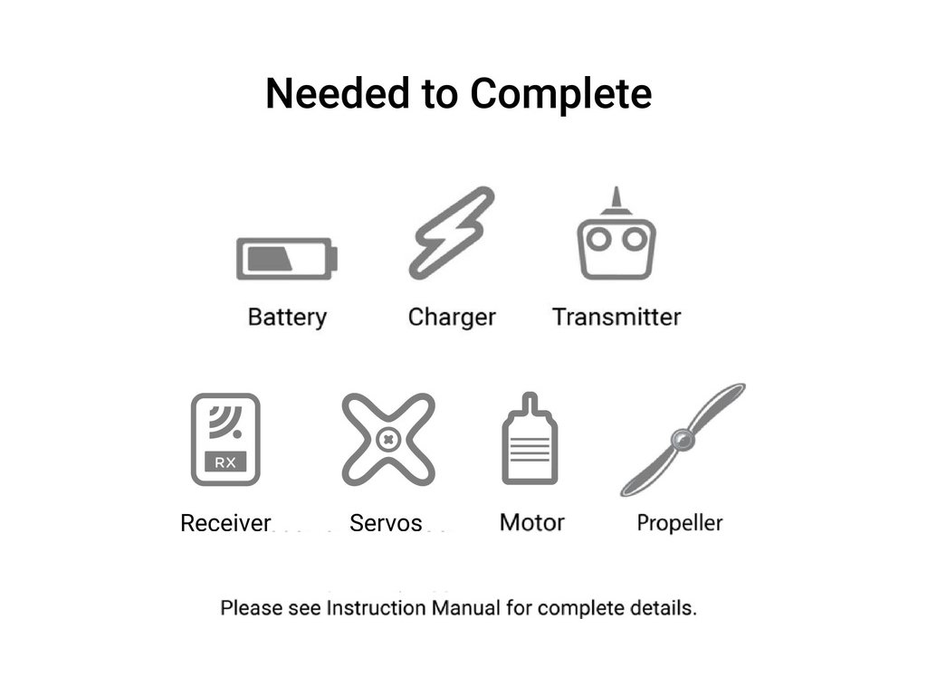 Pro uvedení do provozu je potřeba doplnit motor Outrunner 900–1500W, regulátor 100A, serva Mini (2x min. 9 kg.cm pro křidélka, 2x min. 11 kg.cm pro směrovku a výškovku), min. 4kanálovou RC soupravu, pohonný LiPo akumulátor 6S 22.2V 3200-7000mAh 30C+ a kompatibilní nabíječ.