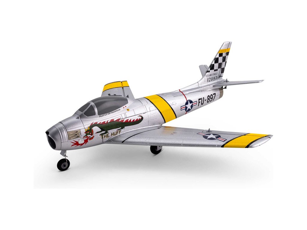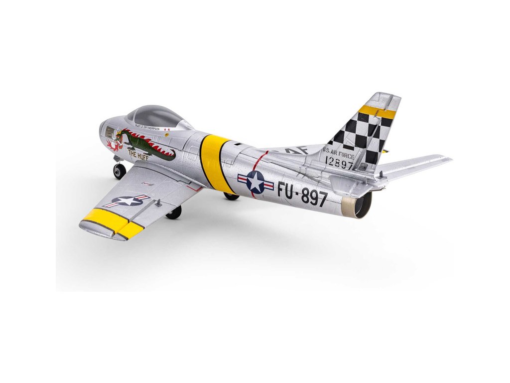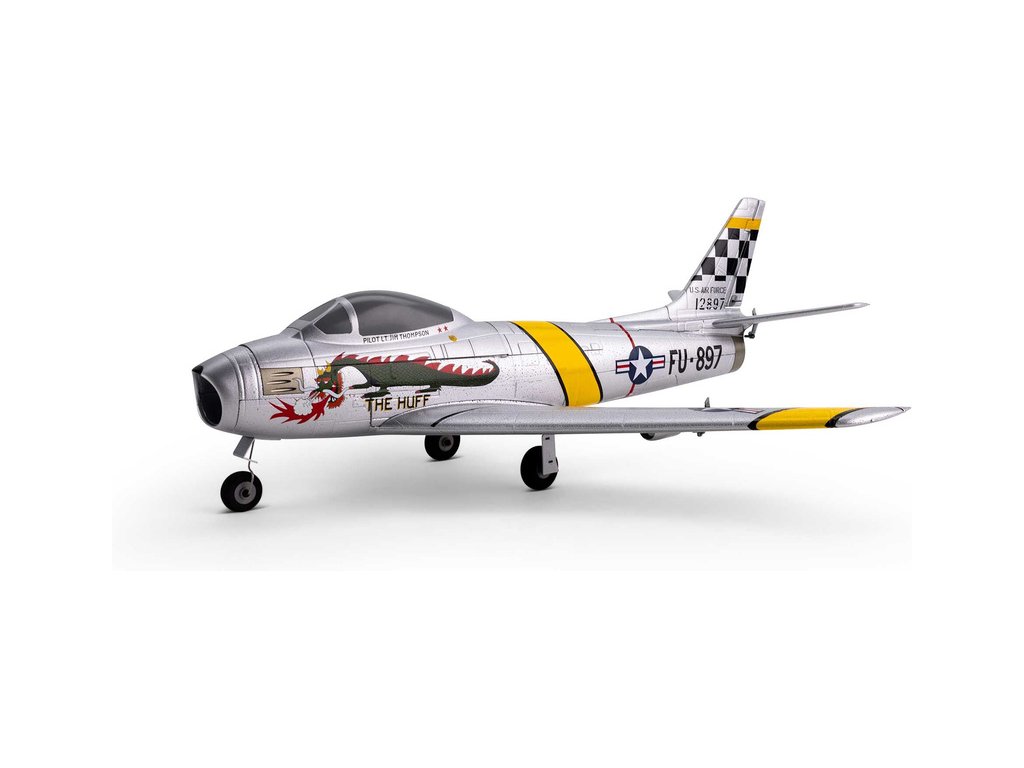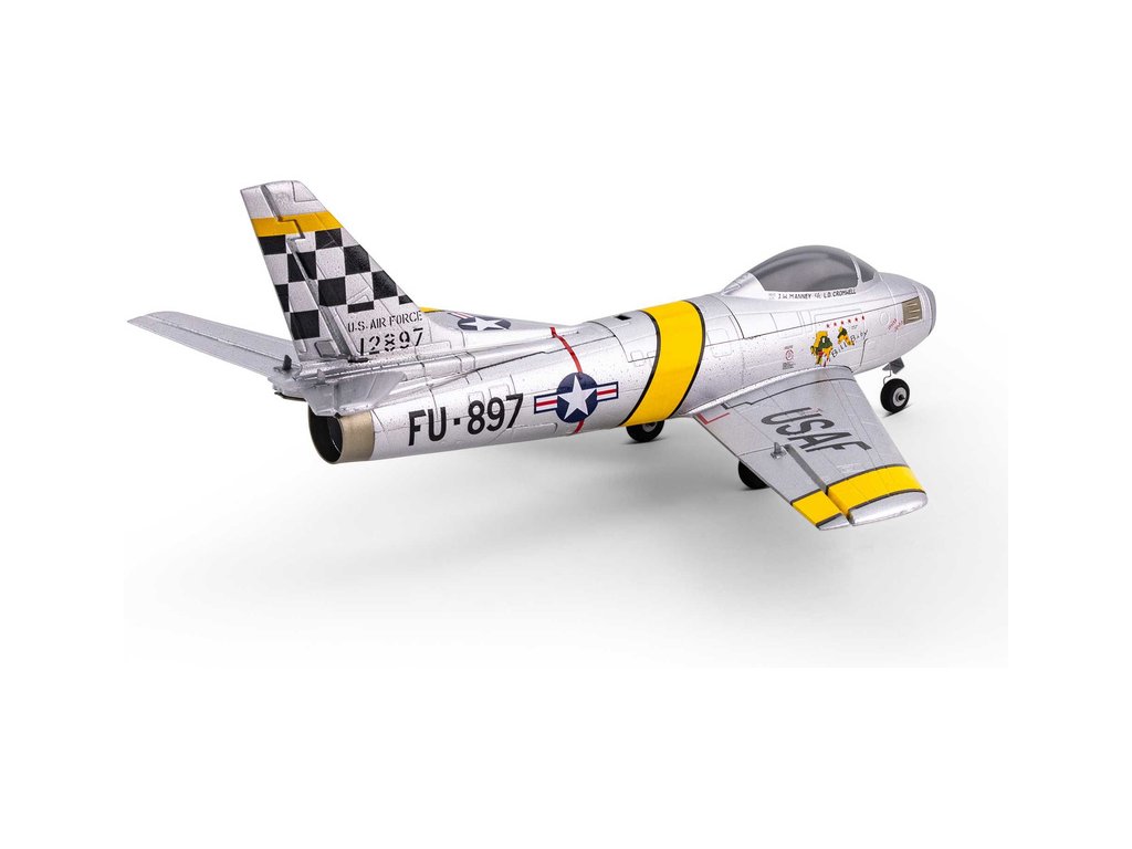 Legendární americký stíhací proudový vojenský letoun F-86 Sabre ve zpracování od E-flite jako Ultra mikro RC model na dálkové ovládání. Sabre pohání mikro 6-lopatkové dmychadlo 30mm se střídavým motorem 1010-8300kv, model má nainstalován přijímač Spektrum se špičkovou technologií 2,4 GHz DSMX® a Safe Select a lineární digitální serva. Doporučena je LiPol baterie 4S 14.8V 450mAh. Sabre má drak z EPS vyztužený uhlíkovými prvky a výkonným pohonem. Model je vybaven exkluzivní technologií Spektrum™ AS3X® a volitelnou technologií ochrany letové obálky SAFE® Select. Navíc poskytuje telemetrii napětí baterie v reálném čase kompatibilním vysílačům, což více než kdy jindy usnadňuje létání a zvyšuje bezpečnost provozu. Pevný podvozek s řiditelným příďovým kolem usnadňuje pojíždění, vzlétání a přistávání na hladkém povrchu. Nebo můžete odejmout podvozek pro vyšší rychlost a vertikální výkon a model házet z ruky, díky automatickému režimu Hand Launch Assist a přistávat na trávě.