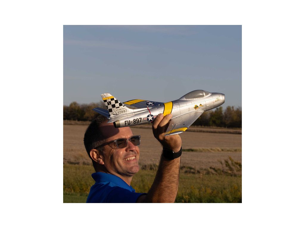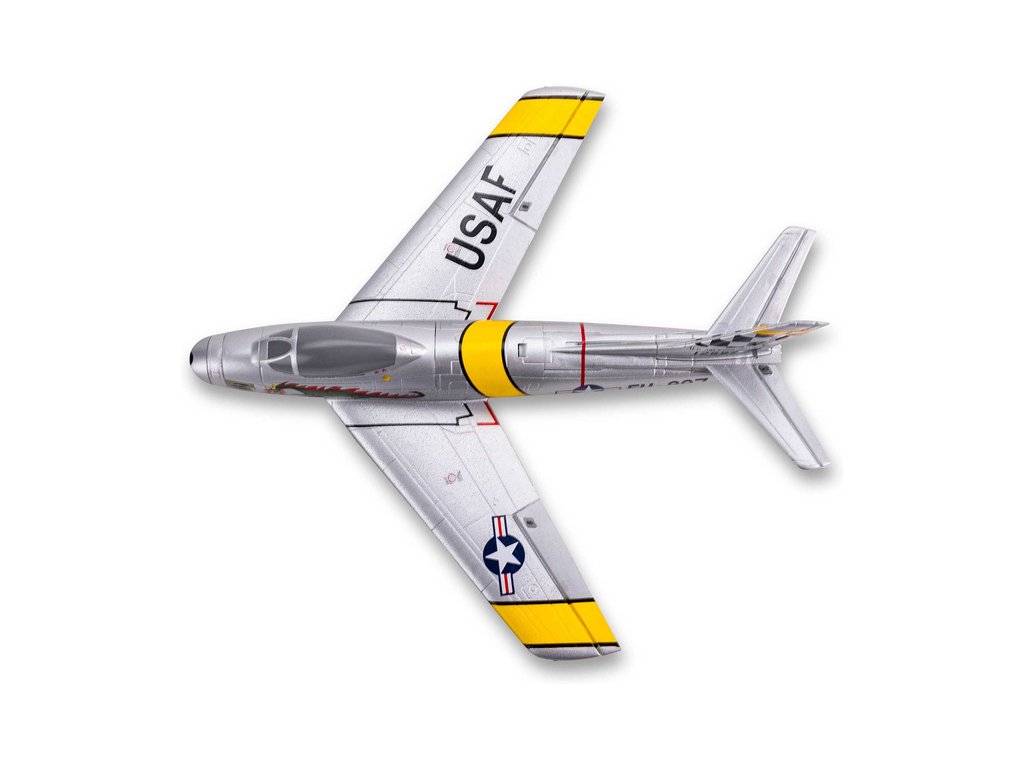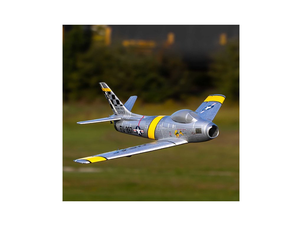 Tento F-86 Sabre obsahuje exkluzivní technologie Spektrum™ AS3X® a SAFE® Select. AS3X pracuje v zákulisí, aby vyrovnal účinky větru a turbulencí a dodal pocit uzamčení, díky kterému budete vypadat, jako byste létali v mnohem větším letadle. Volitelné použití SAFE Select nabízí limity sklonu a náklonu spolu s automatickou samonivelací, kterou lze zapnout a vypnout přepnutím přepínače, aby se s F-86 létalo dobře i méně zkušeným pilotům!
