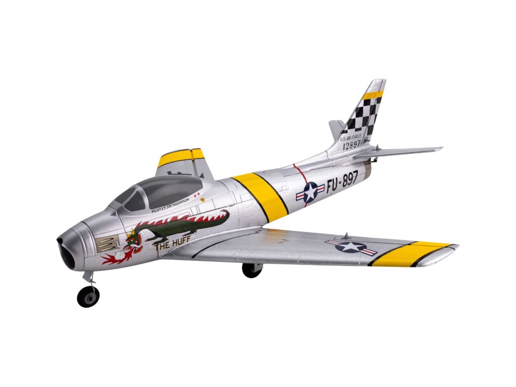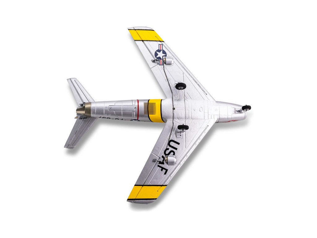 První americký proudový stíhací letoun F-86 Sabre jako ultra mikro model od E-flite na dmychadlo 30mm EDF, je sestaven a připraven k letu hned po vybalení. Řídící jednotka s elektronickou stabilizací AS3X a volitelnou funkcí SAFE.