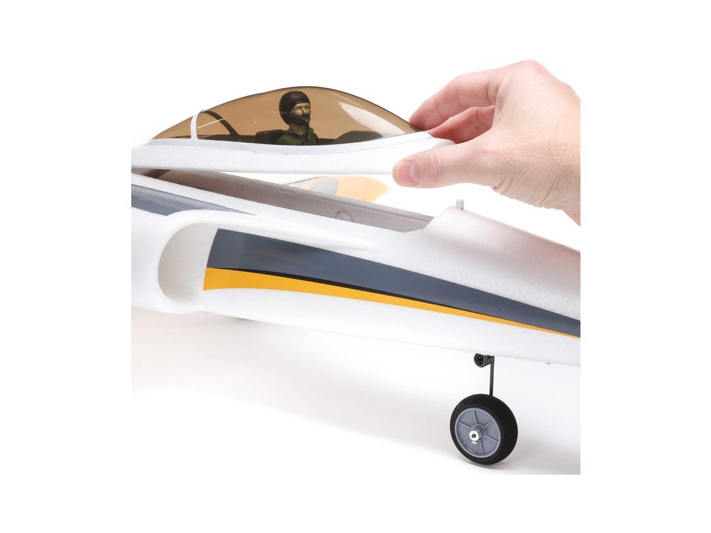 Model je z tuhé, lehké a pevné hmoty EPO a je kompozitem vyztužený a zesílený, aby zvládl přidanou rychlost a akrobatické schopnosti hned po vybalení. Pevný podvozek je vybaven koly a pneumatikami s menším průměrem pro uhlazenější vzhled a menší odpor. Široký rozchod a řiditelné přední kolo usnadňuje pojíždění, vzlétání a přistání na zpevněných, hliněných a krátce střižených travnatých površích – nebo můžete nainstalovat větší kola z Habu STS, abyste mohli létat z hustší trávy a horších povrchů. Můžete také odstranit podvozek pro dosažení větší rychlosti a vertikálního výkonu snadným startem z ruky a přistáním na břicho na trávě. Nejlepší ze všeho je, že Habu SS 70mm EDF se montuje rychle a snadno bez lepidla nebo speciálních nástrojů – takže můžete být připraveni k letu za kratší dobu, než zabere nabití baterie!