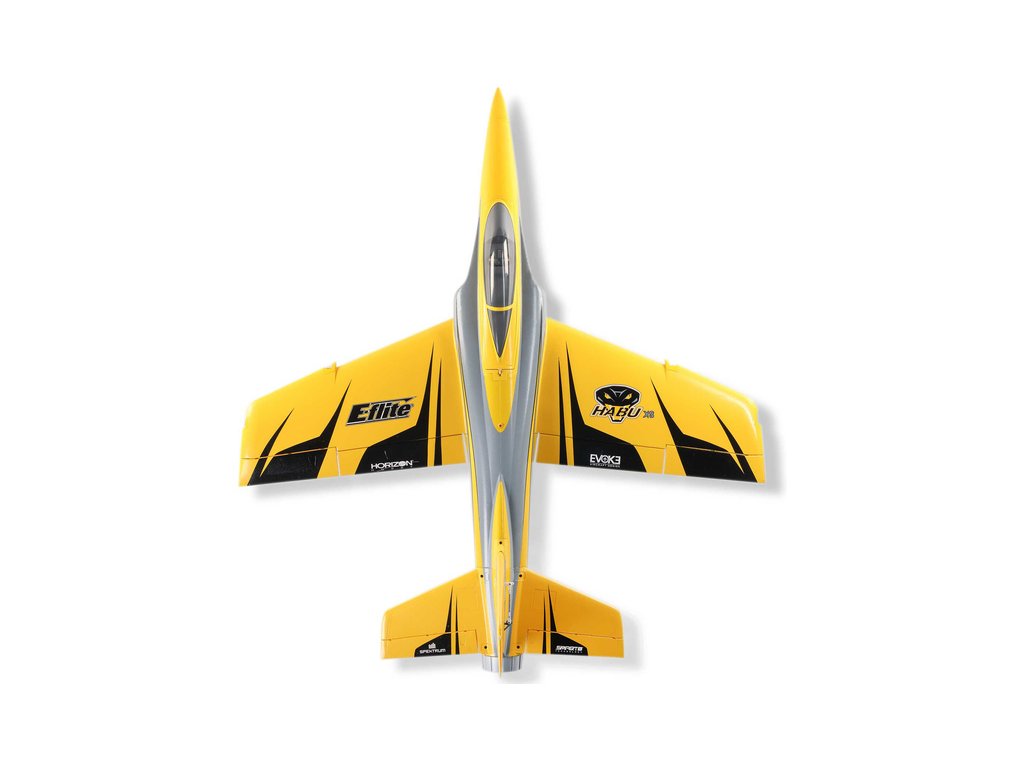 Srdcem modelu je výkonné dmychadlo s 12listým ventilátorem, které v kombinaci s odborně navrženým vzduchovým potrubím poskytuje výborný tah a autentický zvuk podobný turbíně a to bez falešných otvorů. Habu SX je schopno vodorovného letu maximální rychlostí až 190 km/h a má působivý vertikální výkon. K montáži není potřeba žádné lepidlo, jednodílné křídlo se zajistí pomocí šroubů, stejně jako výška, kterou sestavíte se směrovkou v jeden celek. Kompozitový drak z EPO je dokončen, stejně jako všechny díly s kvalitním lakováním. Velký horní kryt usnadňuje vložení akumulátoru a díky plastovému okraji nedochází k jeho poškozování. Osm továrně instalovaných digitálních serv je spojeno s kormidly táhly s kulovými čepy pro ostré a přesné ovládání. Zatahovací podvozek přidává na autentičnosti a snižuje odpor vzduchu. Navíc je vybaven tlumícím systémem, takže můžete snadno létat z trávy a jiných povrchů.