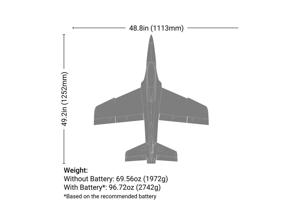 80mm dmychadlo s 12 listy, střídavý motor Spektrum a regulátor 130A v kombinaci s akumulátorem LiPo 6S 4000–7000mAh 30+C (akumulátor se prodává samostatně), poskytují vynikající vertikální výkon a fantastický rozsah rychlostí s prakticky okamžitou odezvou plynu. Ale to, co dělá zážitek skutečně fascinujícím, je autentický zvuk, který dmychadlo vydává.