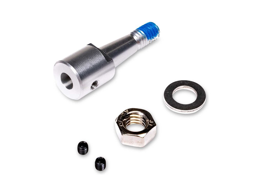 Náhradní díl pro RC model letadla E-flite Habu XS 80: hřídel s maticí dmychadla 80mm. Obsahuje: 1x 6mm kuželová hřídel rotoru, 1x podložka 6x12mm, 1x šestihranná matice 10mm, 2x stavěcí šroub 3x3mm.