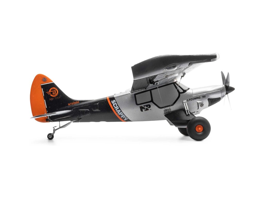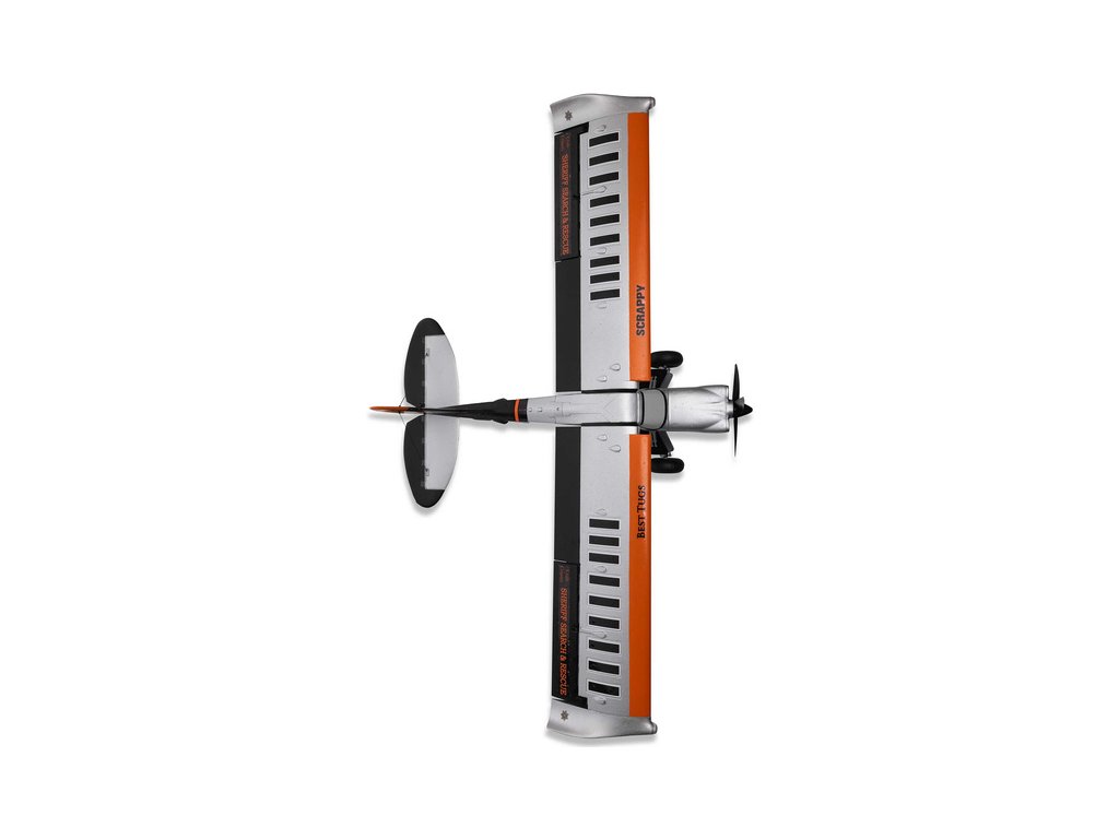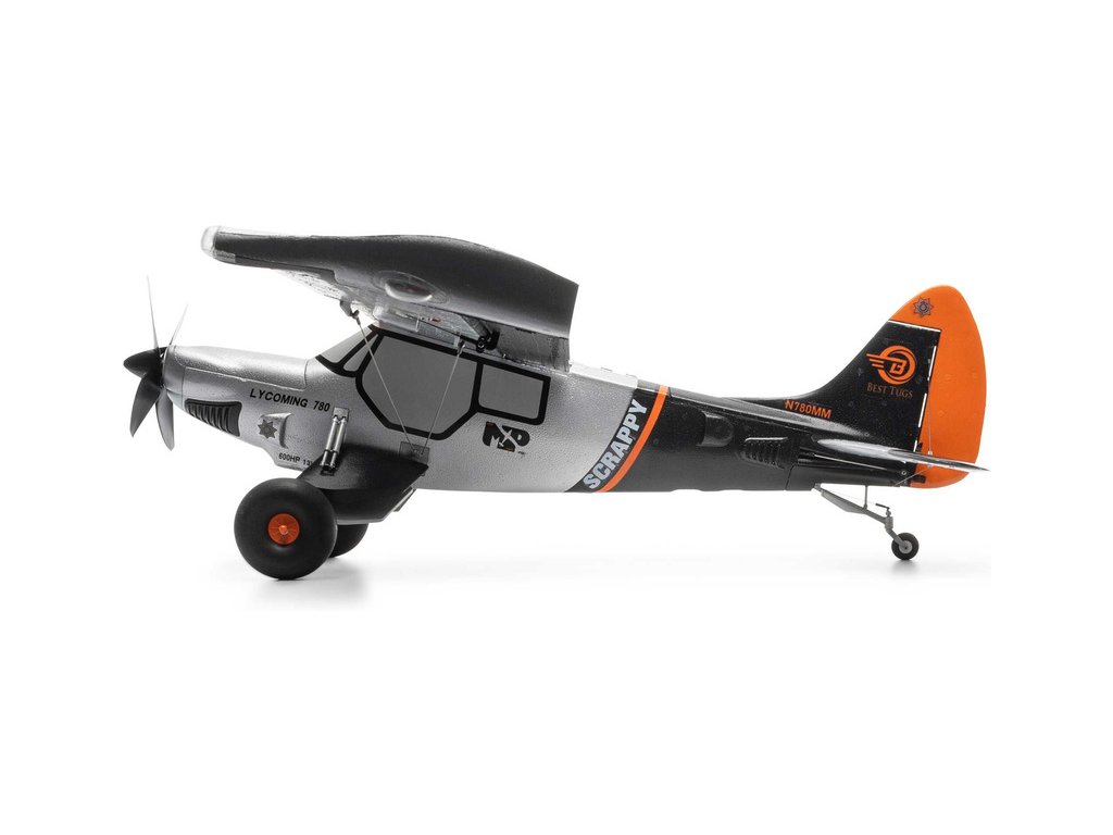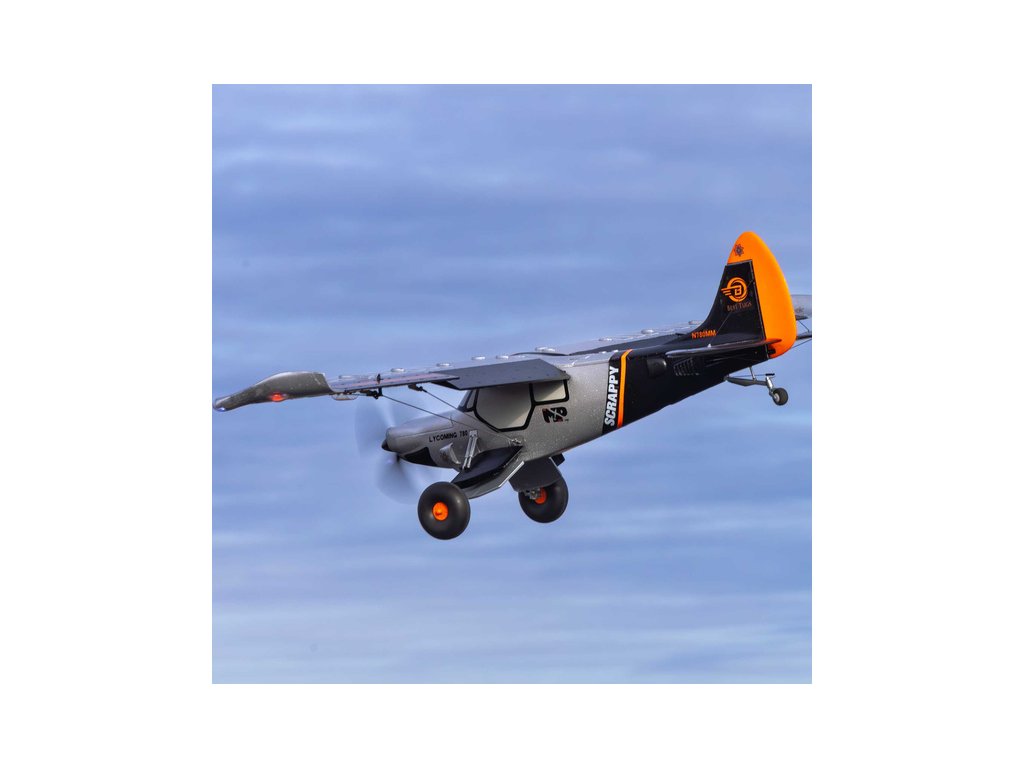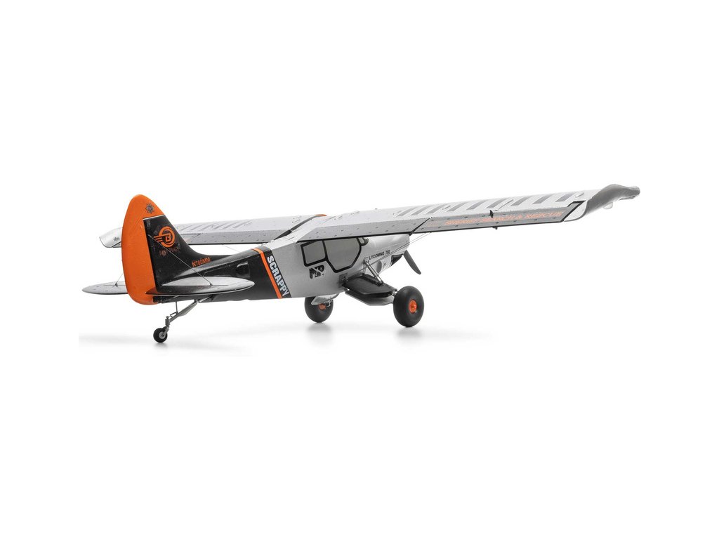 RC model letadla E-flite Micro Scrappy s rozpětím 0.8m je licencovanou replikou letounu známého pilota a konstruktéra Mike Pateyho. Stejně jako originál i model obsahuje vlastnosti STOL (vzlet a přistání na krátké dráze), odpružený podvozek s velkými měkkými pneumatikami ve stylu Tundra, vztlakové klapky, řiditelnou ostruhu a atraktivní LED osvětlení. Výkonný střídavý motor se speciální 4listou vrtulí umožňuje napájení 3S nebo 4S LiPo akumulátorem. To zajišťuje pohodové i sportovnější akrobatické létání pro mírně pokročilé a pokročilé piloty. Tato verze BNF Basic je vybavena přijímačem Spektrum s vylepšenou technologií AS3X+, která ještě lépe stabilizuje let za větru a v turbulenci, a také volitelným systémem SAFE Select pro snadnější a bezpečnější ovládání.