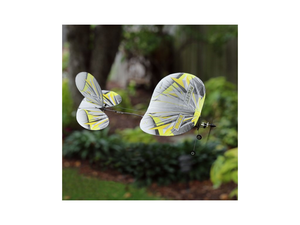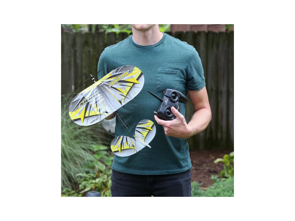 Ve verzi Ready-To-Fly (RTF) vyndáte z krabice, která vám poslouží i jako přepravní box, hotový sestavený mikro model letadla Night Vapor, vysílač s tužkovými bateriemi, pohonnou LiPol baterii a USB nabíječ. To znamená, že nemusíte nic dokupovat a po nabití baterie můžete jít ihned létat.