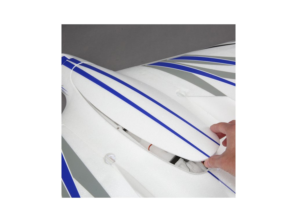 Velký stabilní a dobře létající model je poháněn střídavým motorem 10BL 1300 ot/min/V s tlačnou sklopnou vrtulí a regulátorem E-flite 40A. pohonná jednotka má více než dost výkonu pro přenášení užitečného zatížení fotoaparátu nebo pro sportovní akrobacii.