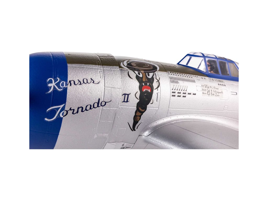 Model je zbarven v kamufláži stroje P-47, který létal u 510. perutě se 405. stíhací skupinou, během druhé světové války. Vyznačuje se řadou maketových detailů, včetně tvarovaných linií panelů, volitelné přídavné nádrže a výzbroje, čtyřlisté vrtule a další. Pro konečnou montáž nepotřebujete lepidlo, proto můžete mít model připraven k letu za kratší dobu, než je ho potřeba k nabití baterie. Vhodná je i velikost pro skladování a přepravu bez nutnosti demontáže, nebo jednodílné křídlo lze snadno demontovat pro ještě snadnější přepravu a skladování.
