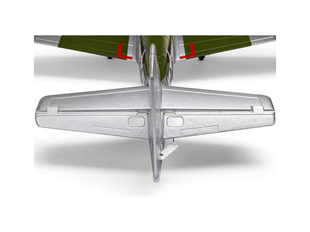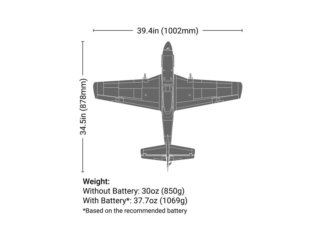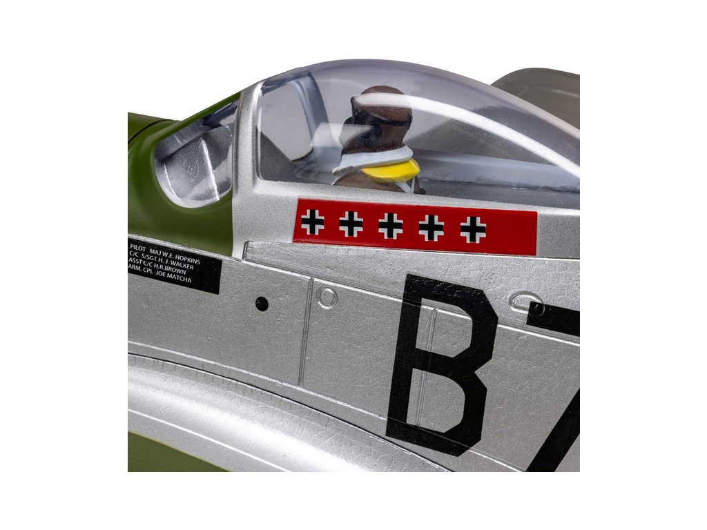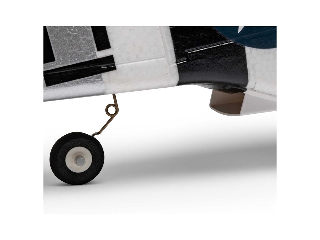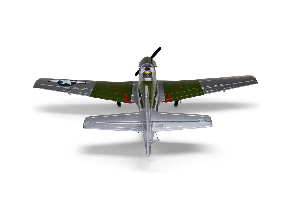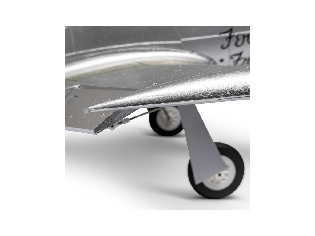 Konstrukce modelu je z odolného EPO materiálu. Pevný podvozek s řiditelným zadním kolem usnadňuje pojíždění, vzlétání a přistávání na hladkém povrchu. Nebo můžete podvozek demontovat, odstartovat hodem z ruky a přistát na břiše do trávy. Přestože má model kompaktní rozměry pro snadnou přepravu v autě, či pro skladování, je navíc vybaven křídly s hands-free připojením serv, umožňující rychlou demontáž a montáž. Výkonný pohonný systém se střídavým motorem a regulátorem 30A s podporou telemetrie, lze napájet oblíbenými akumulátory 3S-4S LiPo 1300-2200 mAh. Křidélka, výškovka a směrovka jsou osazeny celkem čtyřmi digitálními servy Spektrum s kovovými převody a tím je zajištěno přesné a spolehlivé řízení. Zbarvení je továrně dokončeno s kamufláží "Ferocious Frankie“, která byla použita na Mustangu pilotovaného majorem Wallacem E. Hopkinsem – stíhacím esem, které má na kontě 8 vítězství během druhé světové války.