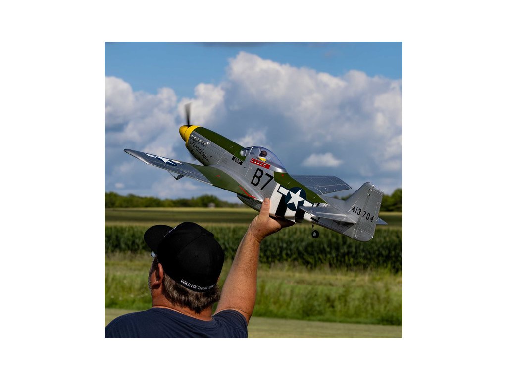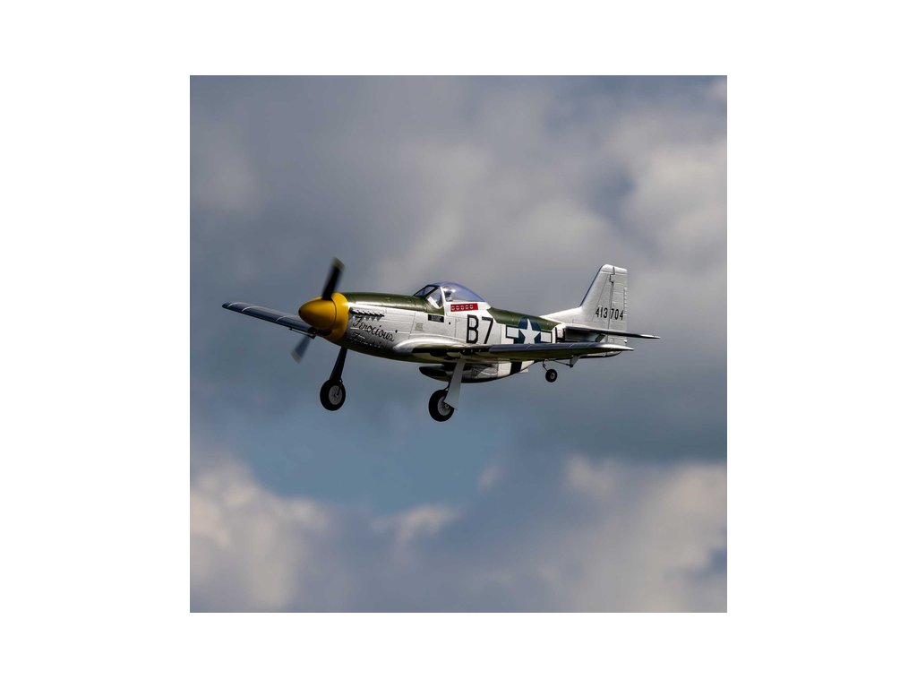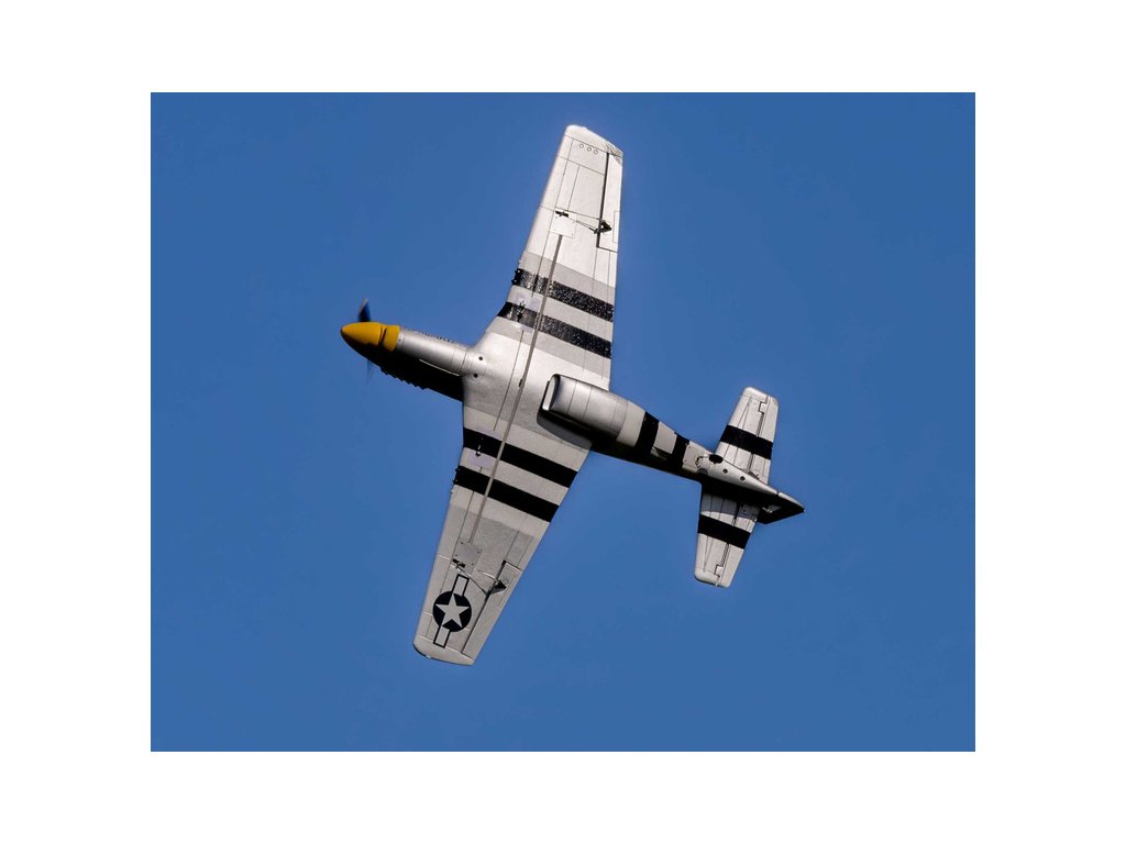 RC model letadla E-flite P-51D Mustang 1,0 m je replikou nejpopulárnějšího stíhacího letounu všech dob! Umožňuje pohodlného hobby i sportovní létání a svými výbornými letovými vlastnostmi je alternativou k oblíbenému E-flite T-28 1,1 m. Tento model byl zároveň navržen jako menší, jednodušší a cenově dostupnější varianta modelu P-51 1.2 m, což ocení piloti, kteří nechtějí řešit "složitost" vztlakových klapek nebo nemají k dispozici letiště vhodné pro zatahovací podvozek. Díky jen o málo menší velikosti je však stále dobře viditelný a zvládne létání ve větším větru, než menší modely třídy mikro a ultra mikro. Přesto i s ním lze létat ve velkých parcích a na sportovních hřištích. To z něj dělá perfektní univerzální maketový model válečného dolnoplošníku ideální pro méně zkušené piloty jako další krok po začátečnickém modelu, pro piloty kteří se chtějí začít učit létat akrobacii, i pro zkušené piloty pro každodenní létání.
