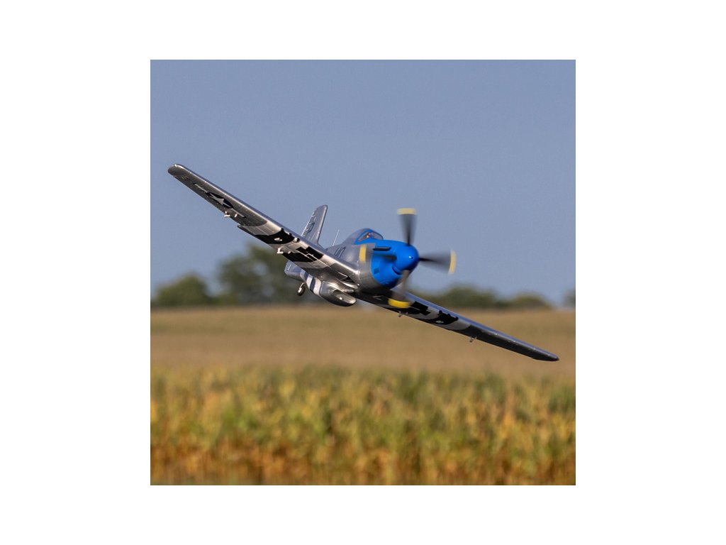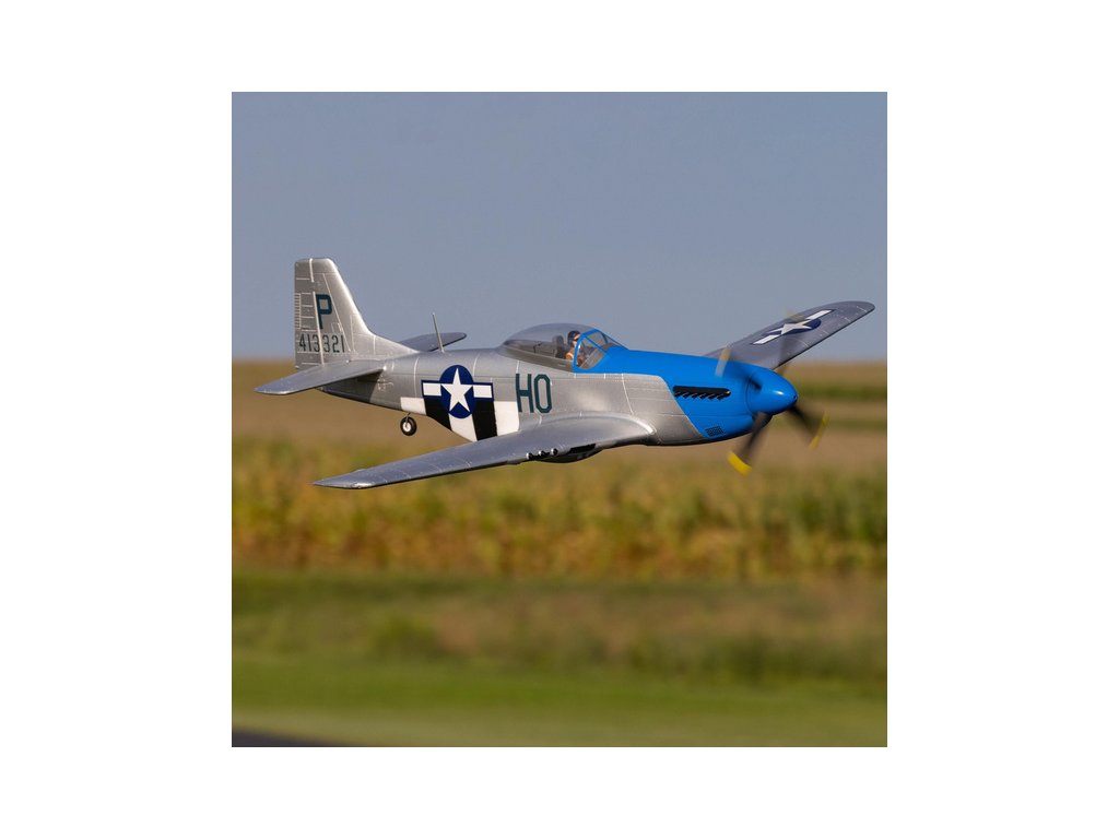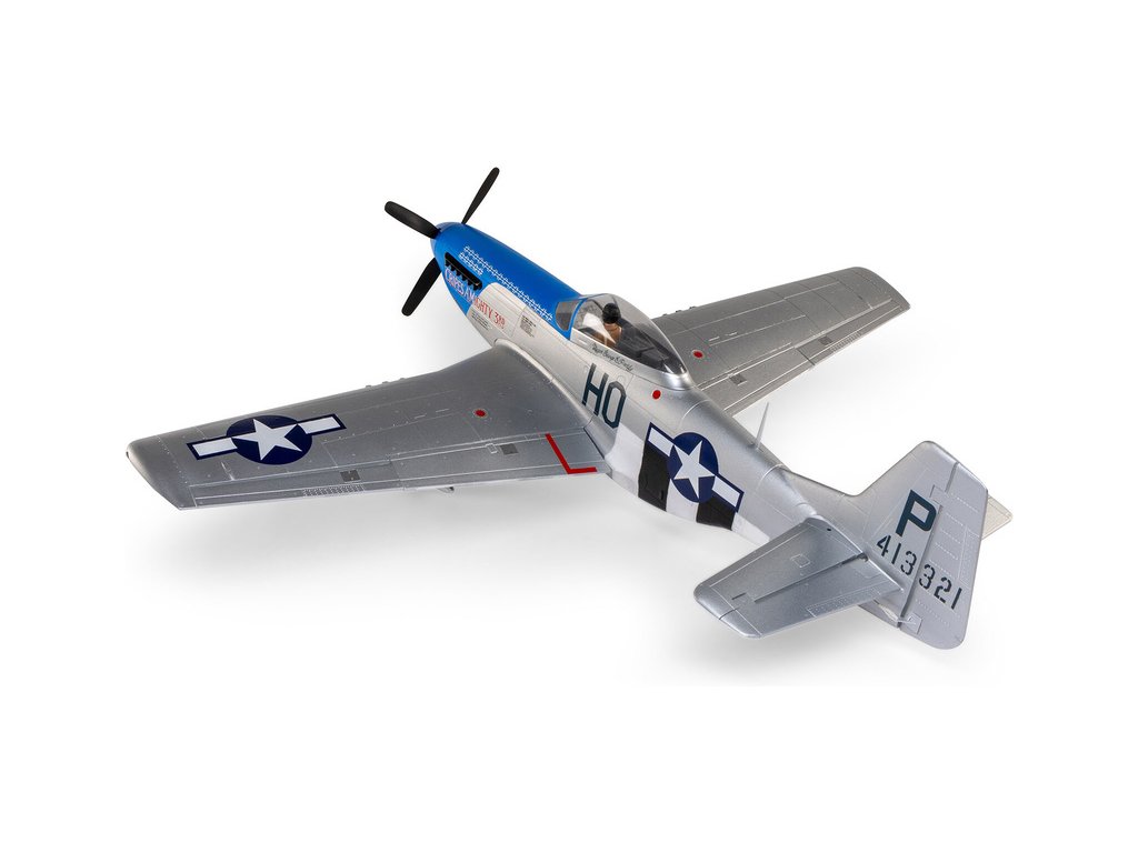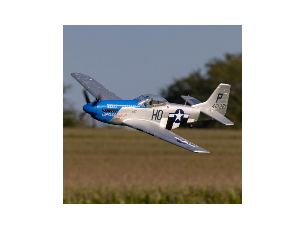 RC model legendární americké stíhačky P-51D Mustang o rozpětí 1,2m, s elektrickým zatahovacím podvozkem, nainstalovanými vztlakovými klapkami, střídavým pohonem pro 3-4S LiPol. Osvědčená lehká pěnová konstrukce EPO a autentické zbarvení “Cripes A’Mighty 3rd”. Verze Plug-N-Play bez přijímače.