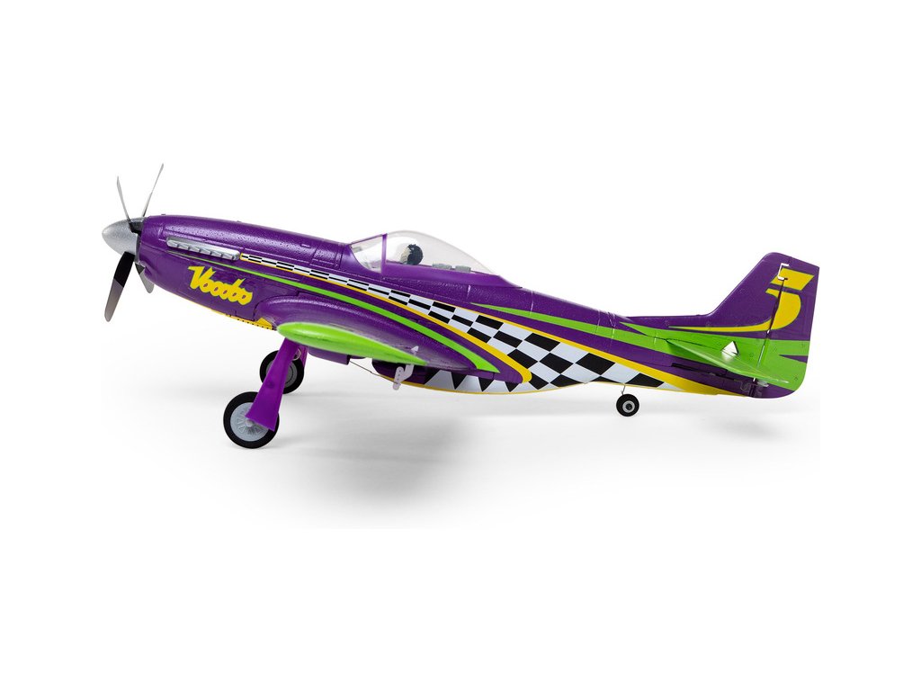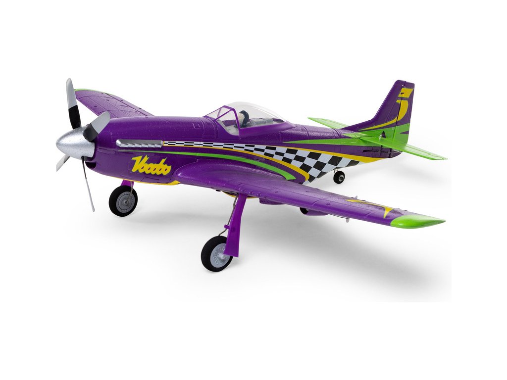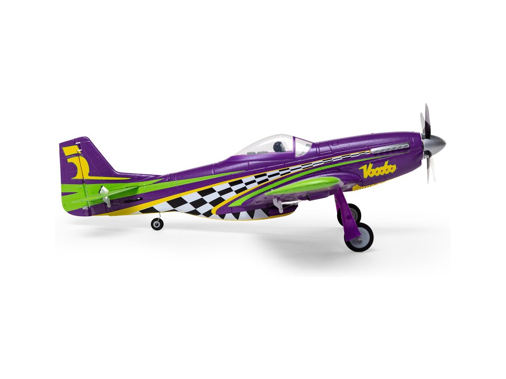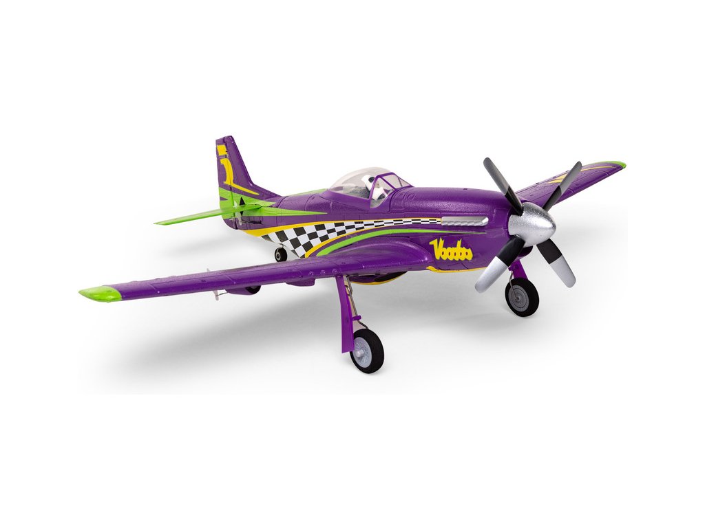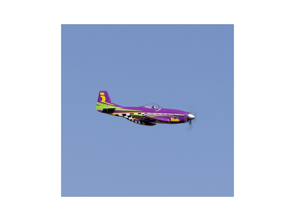 RC model letadla E-flite P-51D Mustang Voodoo je ultra-mikro polomaketa pylonového speciálu s bezkonkurenční stabilitou, exkluzivní technologií AS3X a volitelnou ochranou letové obálky SAFE Select. Verze BNF Basic.
