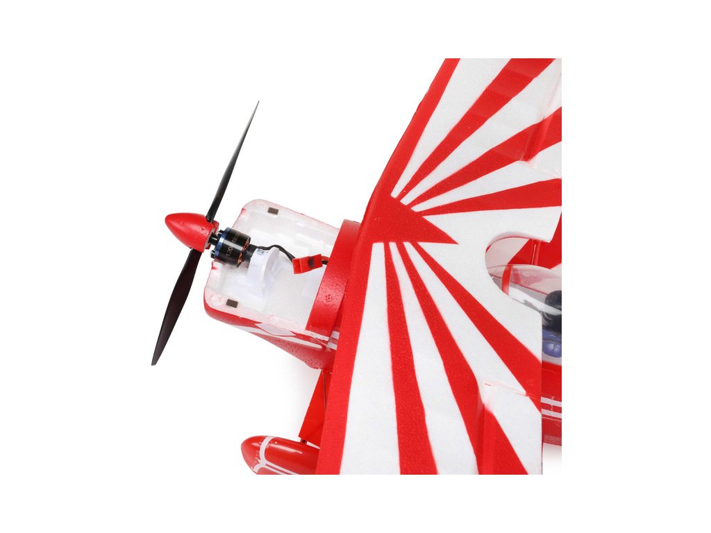 RC model letadla E-flite® UMX™ Pitts S-1S v mikro provedení se střídavým motorem 180BL na 2S-3S LiPol, Exkluzivní technologie SAFE® Select a přijímač Spektrum™ s telemetrií napětí letové baterie.
