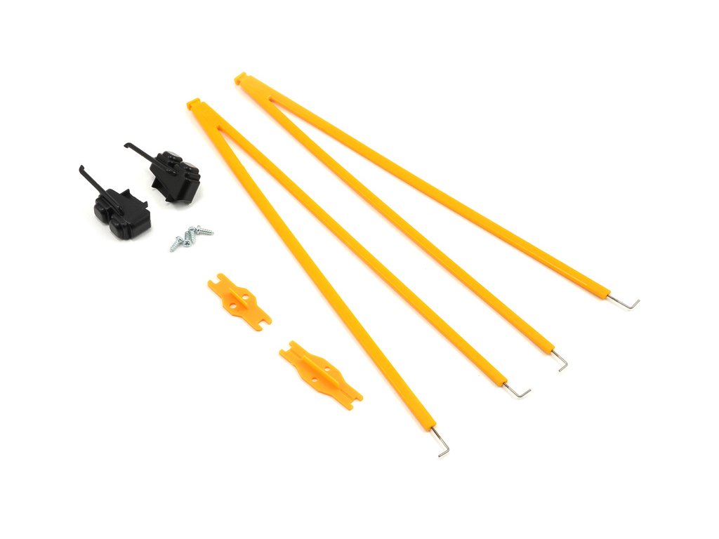 Sada plastových dílů pro RC model mikro letadla E-flite UMX J-3 CUB BL. Obsahem balení jsou vzpěry křídel, levá a pravá maketa motoru, lože příďového podvozku, lože plováků a 4 šroubky.
