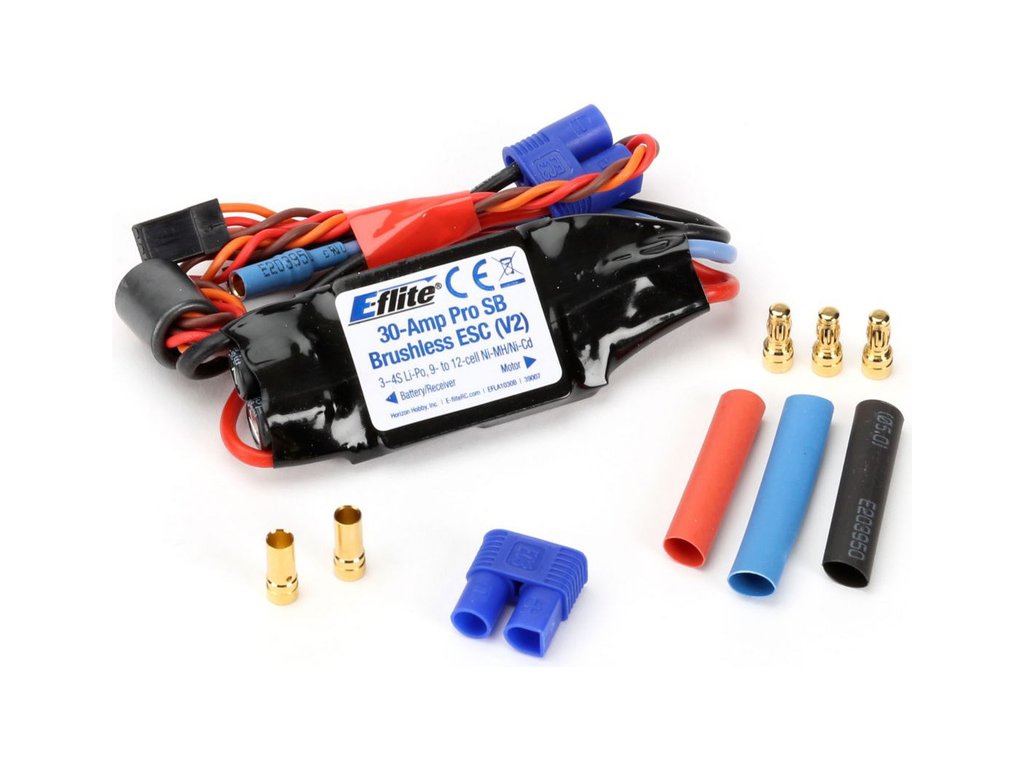Mikroprocesorem řízený elektronický regulátor otáček pro střídavé motory modelů letadel se spínaným zdrojem 3,5A a 5V pro 3-4 čl. LiPol nebo 9 - 12 čl. NiXX, volitelná brzda, 7 analogových nebo 6 digitálních serv.