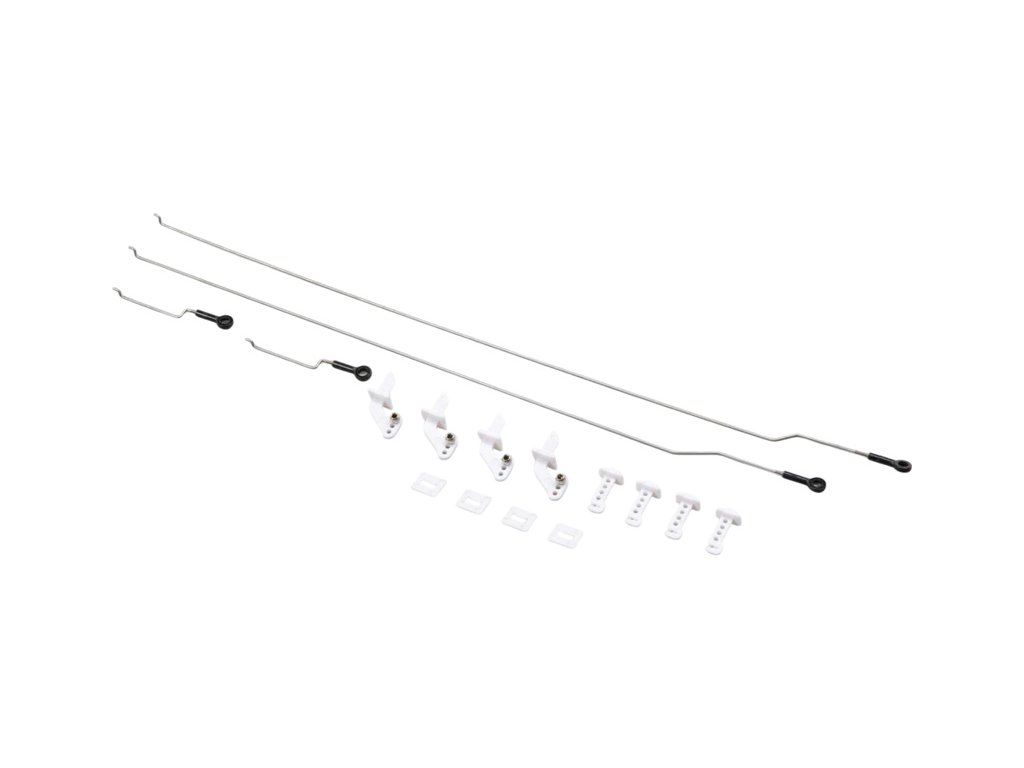 Náhradní díl pro RC model letadla E-flite UMX Eratix 450mm: sada táhel výškovky, směrovky a křidélek. Včetně držáků a pák.