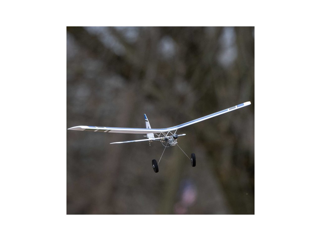 Set obsahuje vše co potřebujete k provozu, hotový model s nainstalovanou elektronikou, vysílač s AA bateriemi a LiPol baterii s USB nabíječem. Stačí tedy nabít pohonnou baterii, vložit 4ks AA baterie do vysílače, zapnout a jít létat. Model má pozoruhodné manévrovací schopnosti, což jej předurčuje pro létání v hale, tělocvičně – nebo za mírných povětrnostních podmínek i venku. Nízká hmotnost znamená menší riziko poškození nárazem do překážky. Řízena je směrovka, výškovka a motor. Model je vybaven i kolečky pro start ze země. Můžete dokonce nainstalovat volitelnou sadu LED osvětlení pro létání za šera nebo v noci.