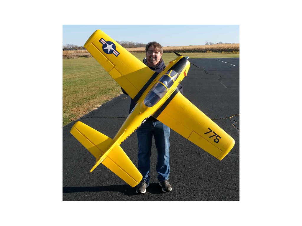 Společnost E-flite přináší velký RC model amerického vojenského cvičného letadla T-28 Trojan o rozpětí 1,98 m. Model je skvěle ovladatelný a má příjemné letové vlastnosti. Vyroben je z odolné hmoty EPO s uhlíkovými výztuhami v konstrukci (Carbon-Z), takže má tuhost dřevěného modelu a navíc velké výhody v odolnosti a opravitelnosti. Je vylepšen o regulátor s telemetrií Smart, spolehlivější podvozek, LED přistávací a navigační světla. Nainstalován je střídavý motor 5040-500Kv s vrtulí 14.75x10, regulátor Avian Smart Lite 70A, 7 ks serv MG, vztlakové klapky a zatahovací elektrický 3-kolý podvozek.
