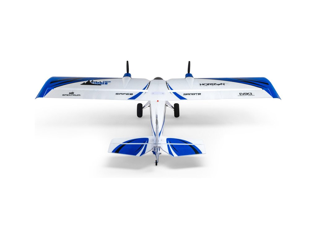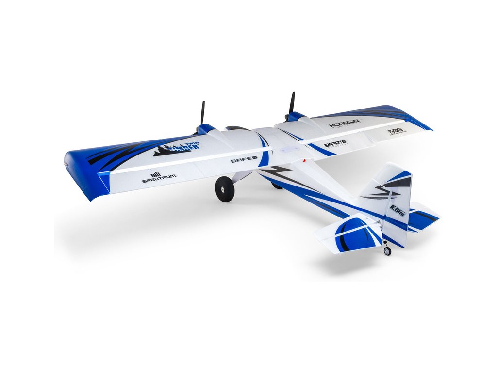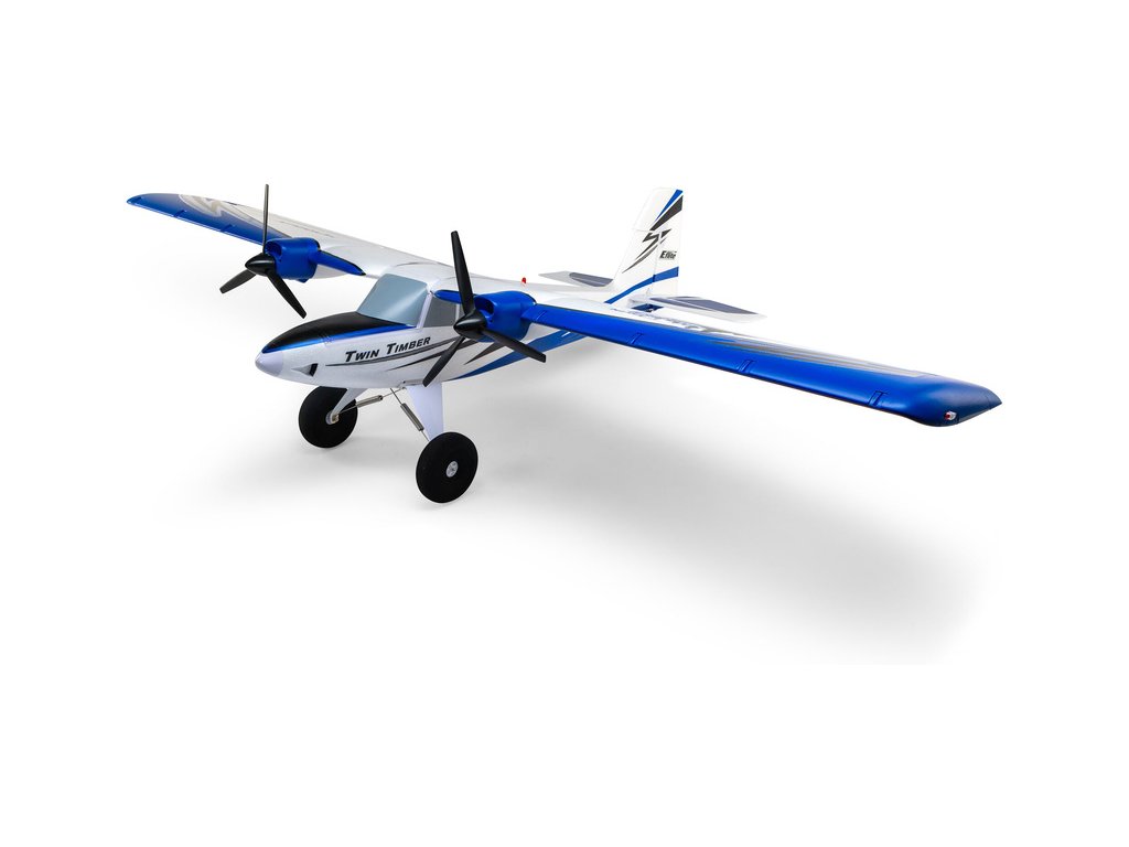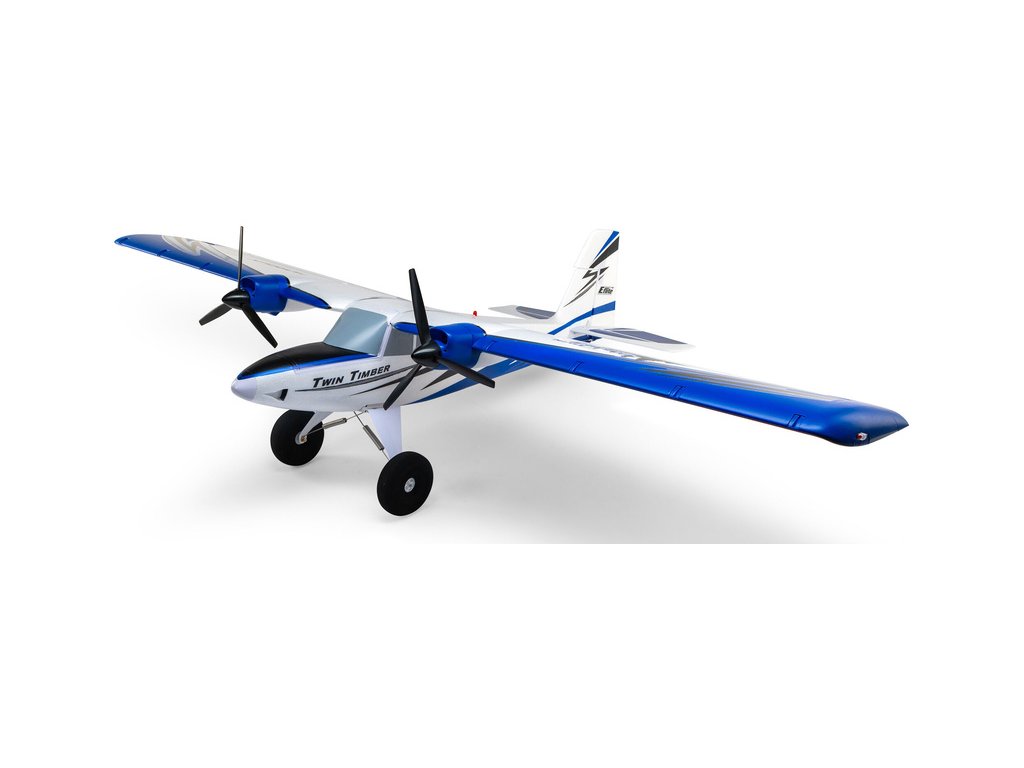 RC model dvoumotorového letadla E-flite Twin Timber PNP o rozpětí 1,6 m, pohání dvojice střídavých motorů se střídavým duálním regulátorem. Model má akrobatické schopnosti, vztlakové klapky a volitelné sloty pro krátký vzlet a přistání. Verze PNP bez přijímače a 3S - 4S LiPol baterie.