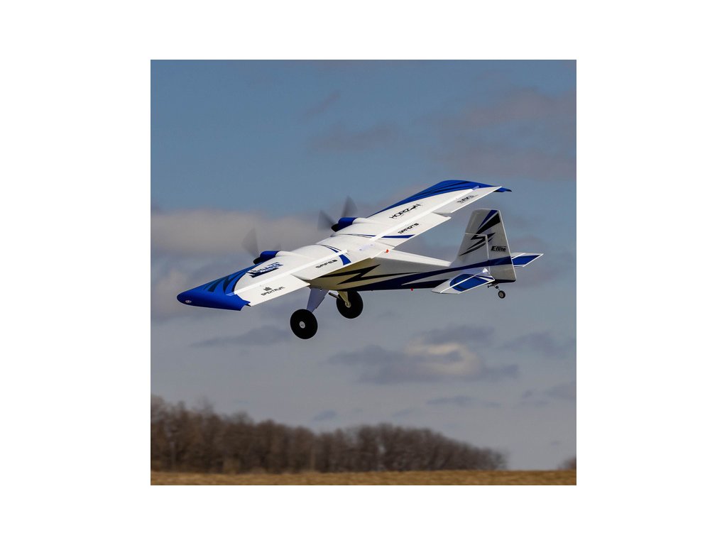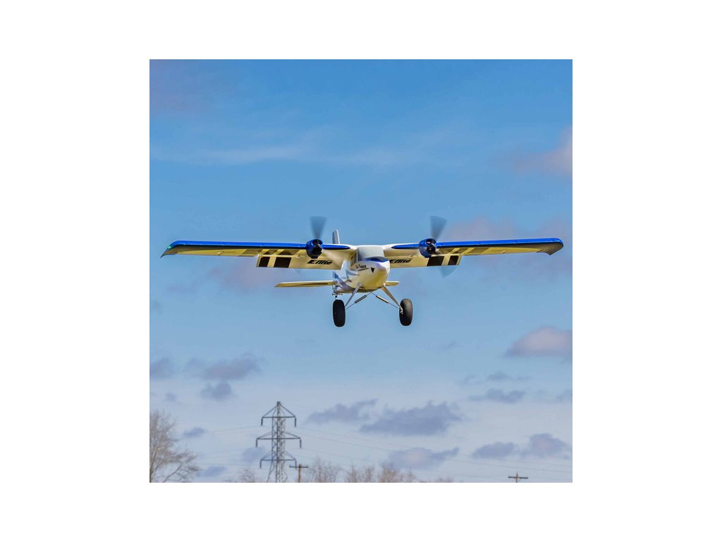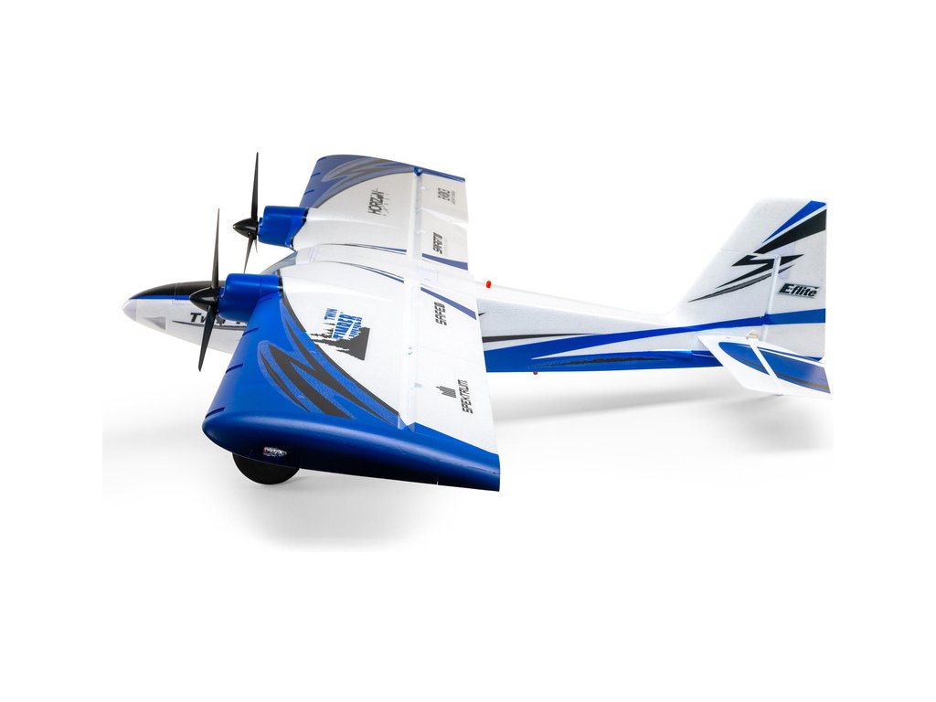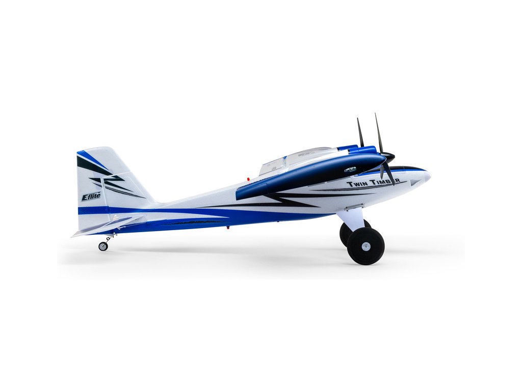 RC model dvoumotorového letadla E-flite Twin Timber BNF Basic o rozpětí 1,6 m, Model má výborné akrobatické schopnosti, vztlakové klapky a volitelné sloty pro krátký vzlet a přistání, stabilizace SAFE Select. Pro 3-4 čl. LiPol baterie.