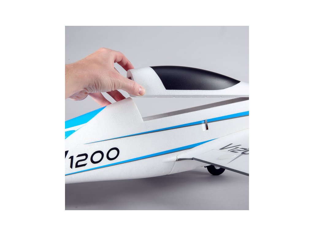 Jste příznivcem rychlosti a hledáte adrenalin? RC model letadla E-flite V1200 BNF Basic je připraven. Už s 4S (14,8V) LiPol dosáhne rychlost až 170 km/hod a když použijete 6S (22,2V) LiPol můžete atakovat 220 km/hod! K sestavení netřeba lepidlo, než nabijete baterii, budete mít model V1200 sestaven. Potřebujete pouze RC soupravu 6-7 kan. a pohonnou LiPol baterii 4S 14.8V až 6S 22.2V 3200–7000mAh.