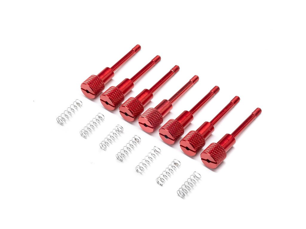 Náhradní díl pro RC model letadla Airbus A320neo 1.5m: zajišťovací šrouby červené s křídlovou hlavou a pružinou.