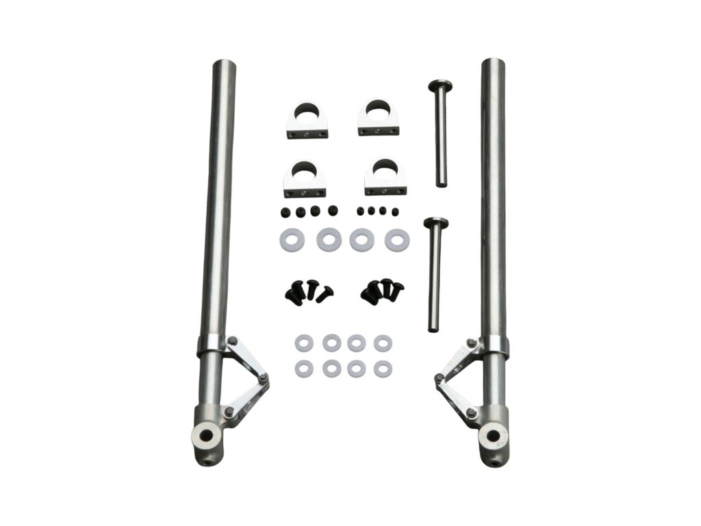 Nohy zatahovacího podvozku odpružené hliníkové pro modely letadel 60-120 s držáky pro kryty.