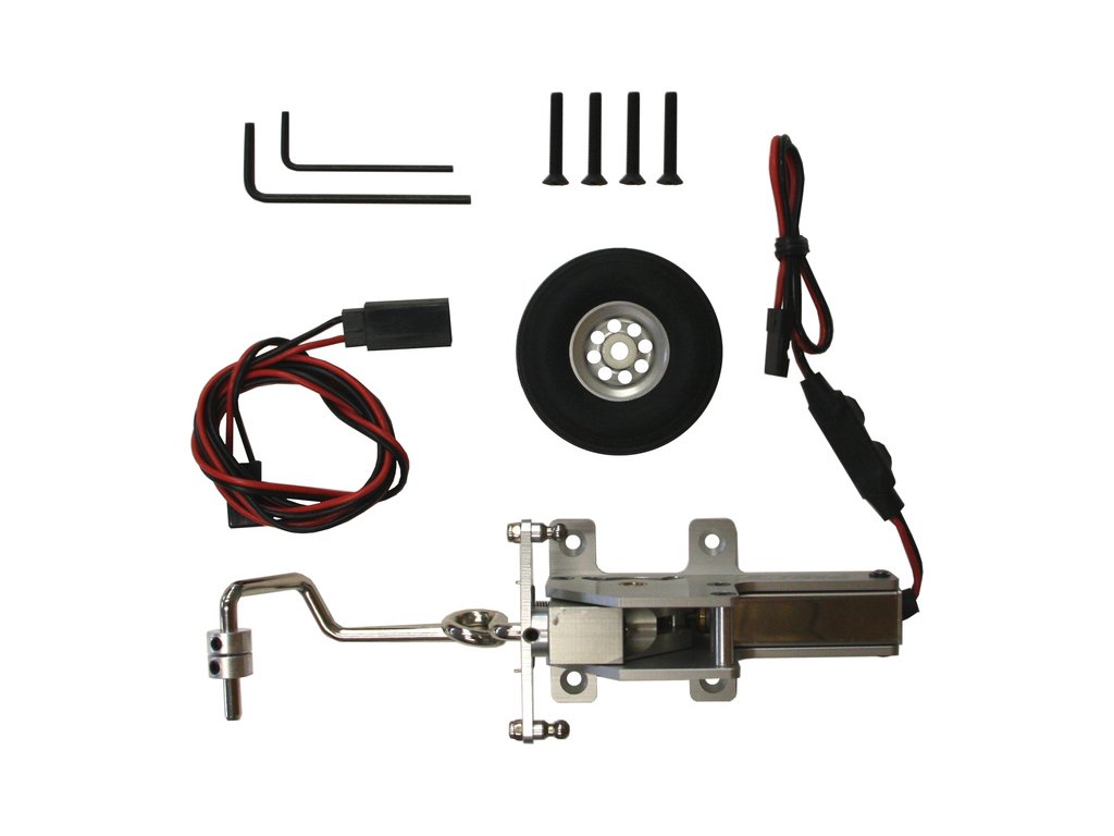 Elektricky zatažitelná ostruha pro model P-51D Mustang 60ccm ARF z hliníku, řiditelné kolo o průměru 45mm, montážní příslušenství, prodlužovací kabel. Jednoduchá montáž buď do samostatného kanálu nebo do řídící jednotky EFLG1200.