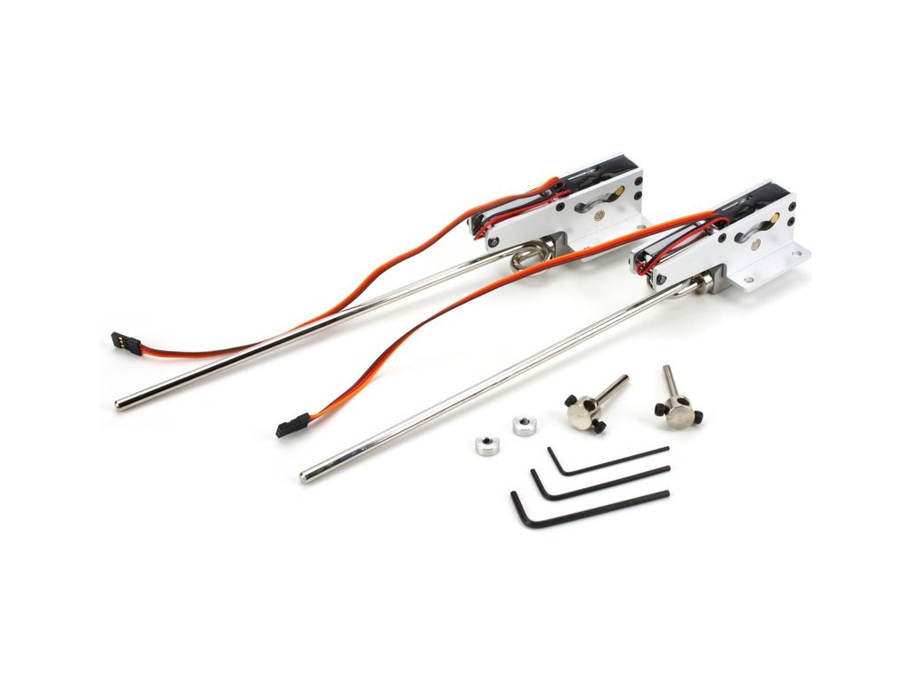 Celokovový zatahovací 2 bodový podvozek s úhlem otevření 100° a pootočením o 90° s elektrickým zasouváním i vysouváním a jednoduchou montáží. Obsahuje kabeláž a montážní příslušenství. Už to nemůže být jednodušší, pouze přišroubujete do křídla a zapojíte k přiloženému Y kabelu.
