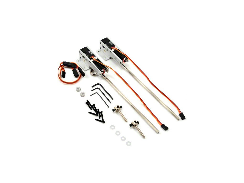 Zatahovací podvozek s elektrickým zasouváním a vytažením a jednoduchou montáží. Obsahuje kabeláž a montážní příslušenství. Přišroubujete do křídla a zapojíte k obsaženému Y kabelu. Podvozek pro nohy o průměru 10mm. Pro modely o letové hmotnosti 3.8 až 6.8 kg.