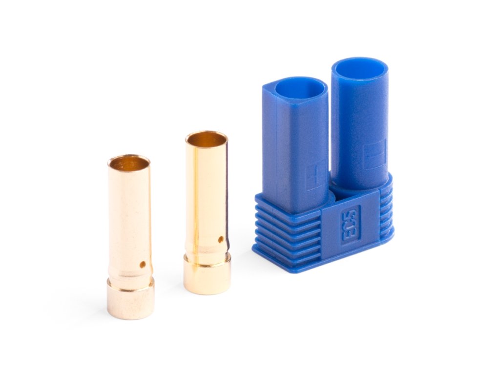 Dvoukolíkový silový konektor se zlacenými 5mm kolíčkovými kontakty se zatížitelností max. 90 A (dlouhodobě 25A). Pro kabely o průřezu max. 5,3 mm2 (10AWG). Přechodový odpor 0,40 mOhm, max. 500 V. Balení 2 kontakty-dutinky a pouzdro.Doplňkové parametry