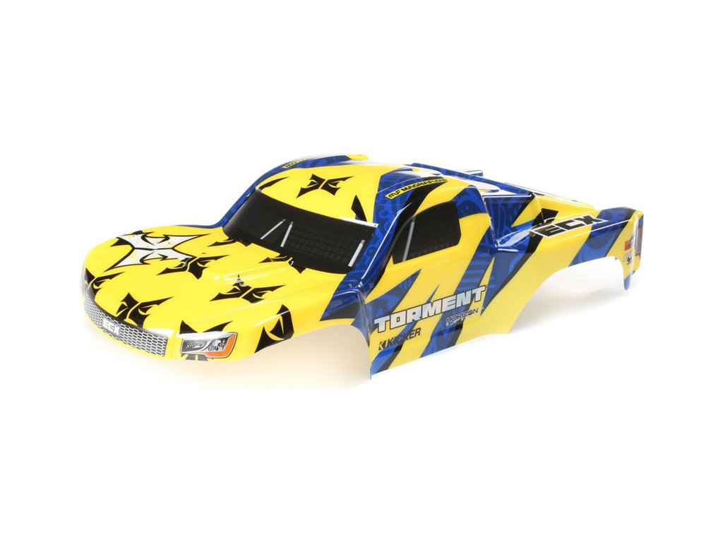 Náhradní díl pro RC modely aut ECX Torment 1:10 2WD: karosérie žlutá/modrá.