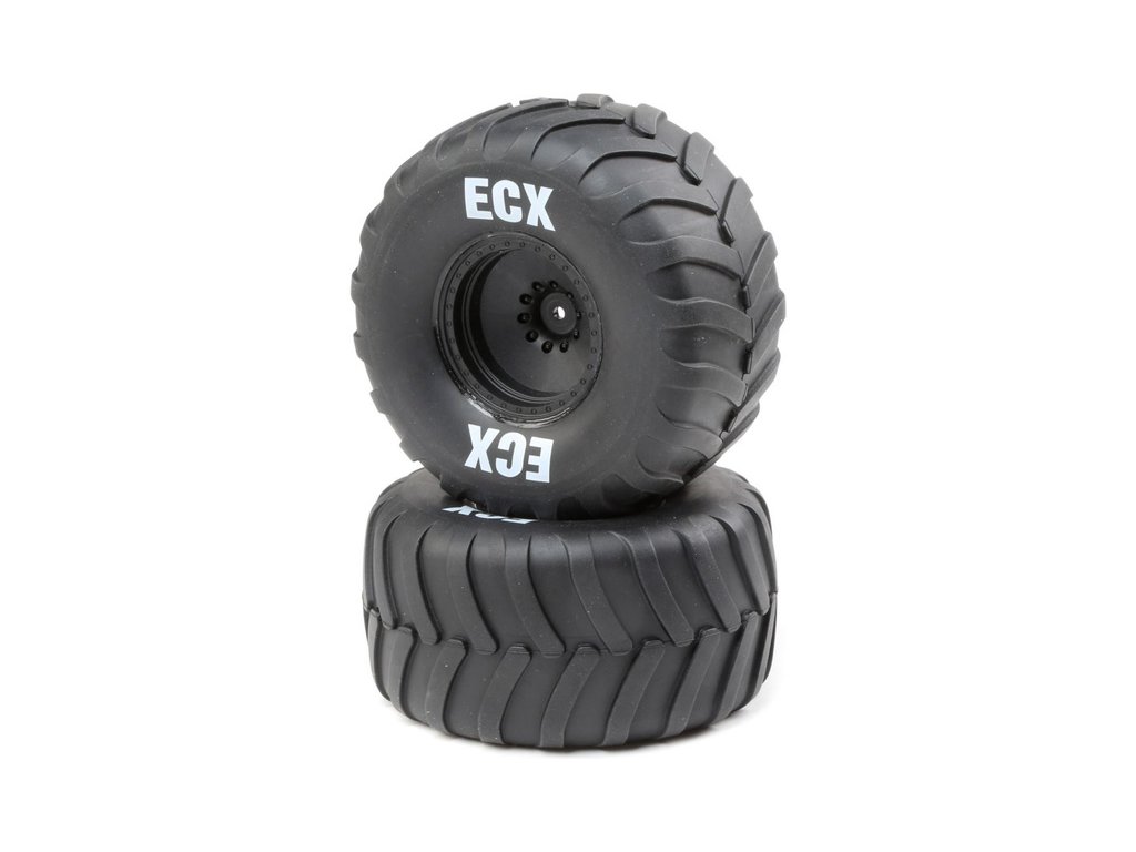 Náhradní díl pro RC modely aut ECX 1:10 Amp Crush: kolo s pneu, černý disk (2 ks)