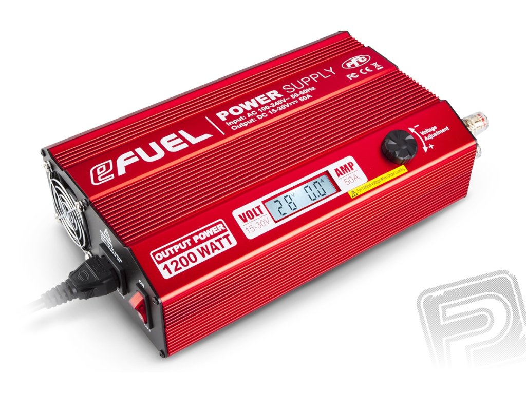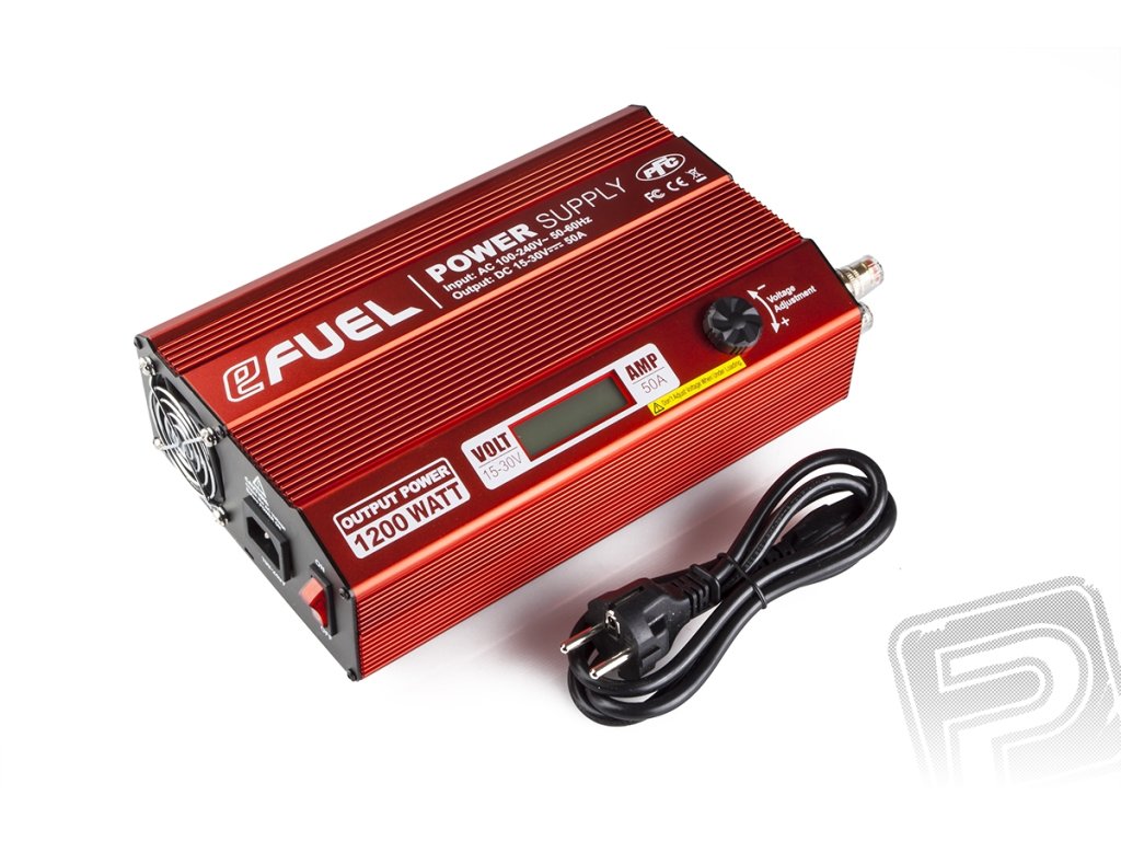Vysokovýkonný – a přitom lehký, kompaktní, v odolném hliníkovém pouzdře – stabilizovaný síťový zdroj eFUEL 50A je ideální pro napájení modelářských nabíječů a dalších zařízení vyžadujících napájení 15-30 V stejnosměrných.