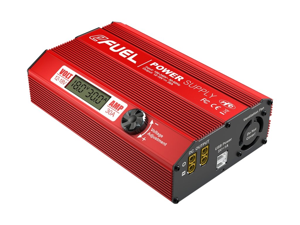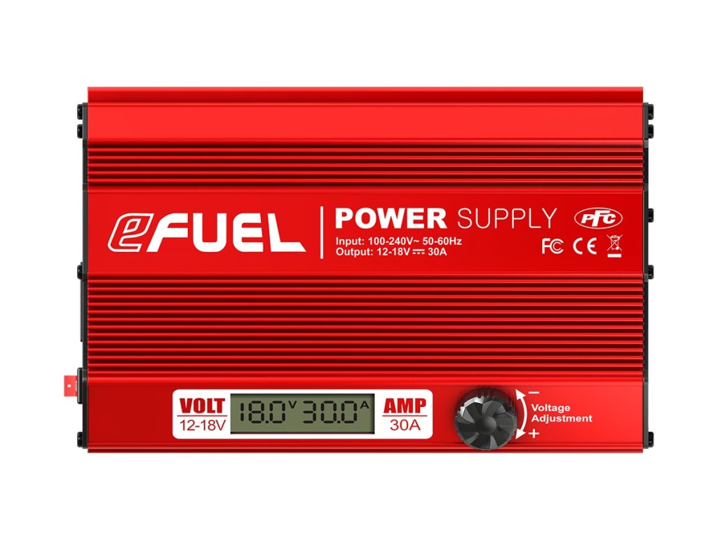 Malý, lehký, kompaktní, v odolném hliníkovém pouzdře – stabilizovaný síťový zdroj eFUEL 30A je ideální pro napájení modelářských nabíječů a dalších zařízení vyžadujících napájení 12-18 V stejnosměrných.