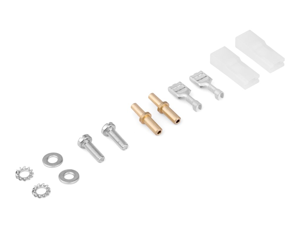 Včetně: kovové upevnění pomocí šroubů a příslušenství s elektrickými zástrčkami a dvěma mosaznými redukčními přípojkami.