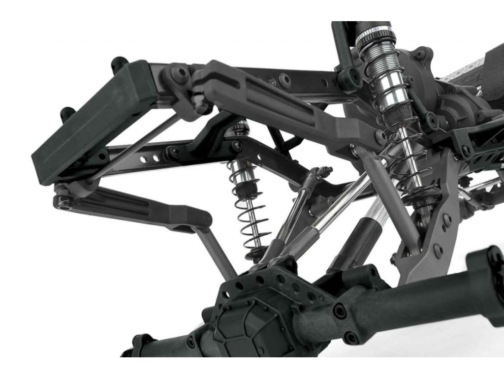Zadní odpružení TRAILING ARM: Srdcem odpružení Gatekeeper jsou zadní vlečná ramena. Tato konstrukce posouvá tlumiče dopředu, čímž zlepšuje rozložení hmotnosti. Vzhledem k tomu, že body uchycení tlumičů jsou na spodních ramenech a podvozku více vpředu, umožňuje to větší okno pro ladění tlumičů a optimalizovanou polohu uchycení protiprokluzové tyče.