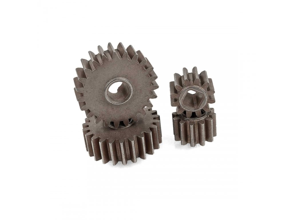 - Součástí je osvědčená převodovka Stealth(r) X s možností nastavení převodového poměru zadního pohonu. V krabici dostanete standardní možnosti převodů 5,7 % a 11,83 %. Ve spojení se zcela novými portálovými nápravami s nulovým procentem zpřevodování se jedná o optimální konfiguraci pro průměrný crawler. Pokud si přejete ještě větší zpřevodování vzadu, je samostatně k dispozici volitelná převodová sada 12/23 zubů (#42372) pro další 36% underdrive.